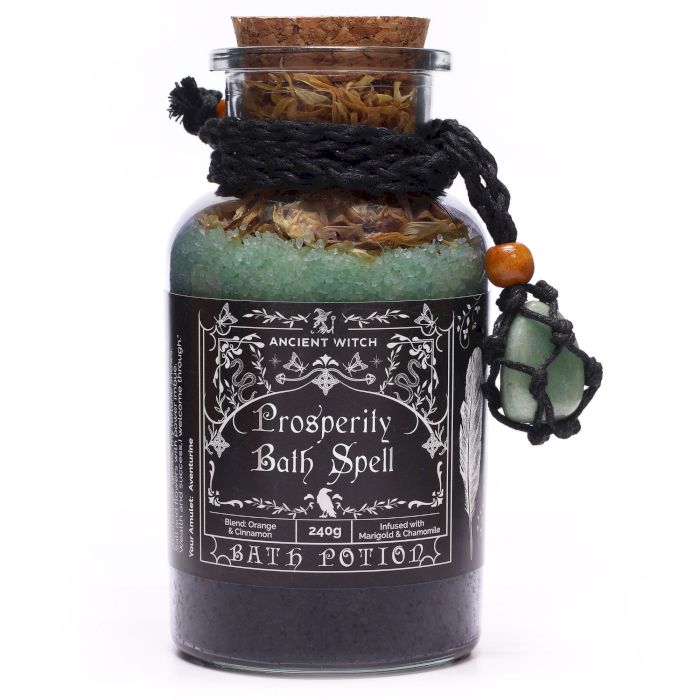Nodig je klanten uit om overvloed en positieve energie in hun leven te verwelkomen met de Ancient Witch Prosperity Bath Spell Potion — een stralende rituele mix geïnspireerd op traditionele welvaartsbezweringen uit de hekserij.
