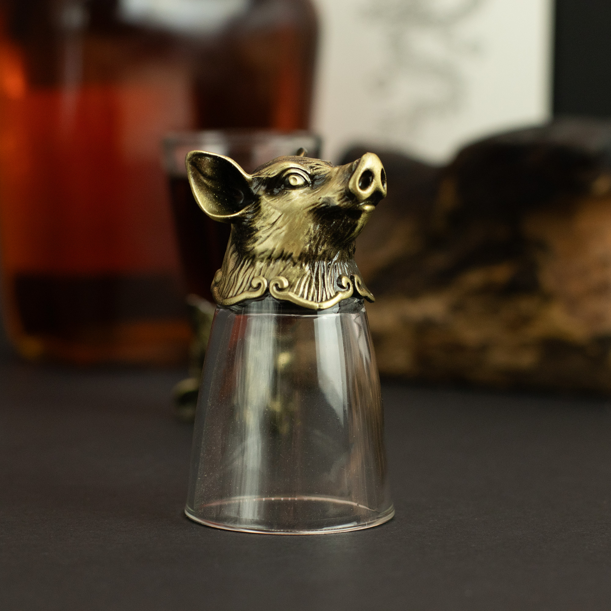 Elk 25 ml shotglas heeft een messing basis in de vorm van een van de twaalf dierenriemtekens – van draak tot konijn, tijger en paard – met verfijnde sculpturale details die prachtig tot hun recht komen wanneer het glas ondersteboven wordt geplaatst.