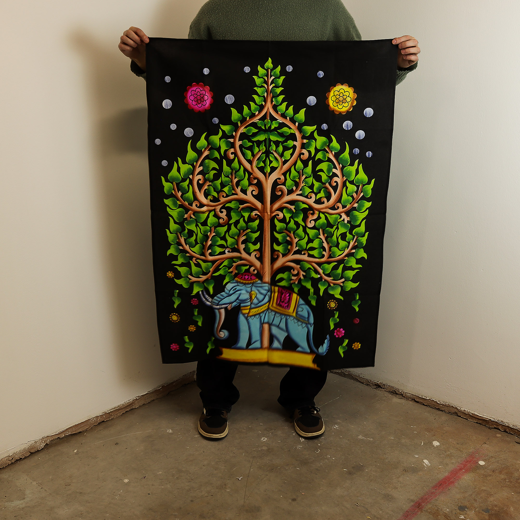 Dit prachtige ontwerp combineert twee krachtige Indiase symbolen: de olifant, die wijsheid, kracht en voorspoed vertegenwoordigt, en de Tree of Life, die groei, harmonie en verbinding symboliseert. Samen vormen ze een betekenisvol stuk dat culturen en generaties overstijgt.
