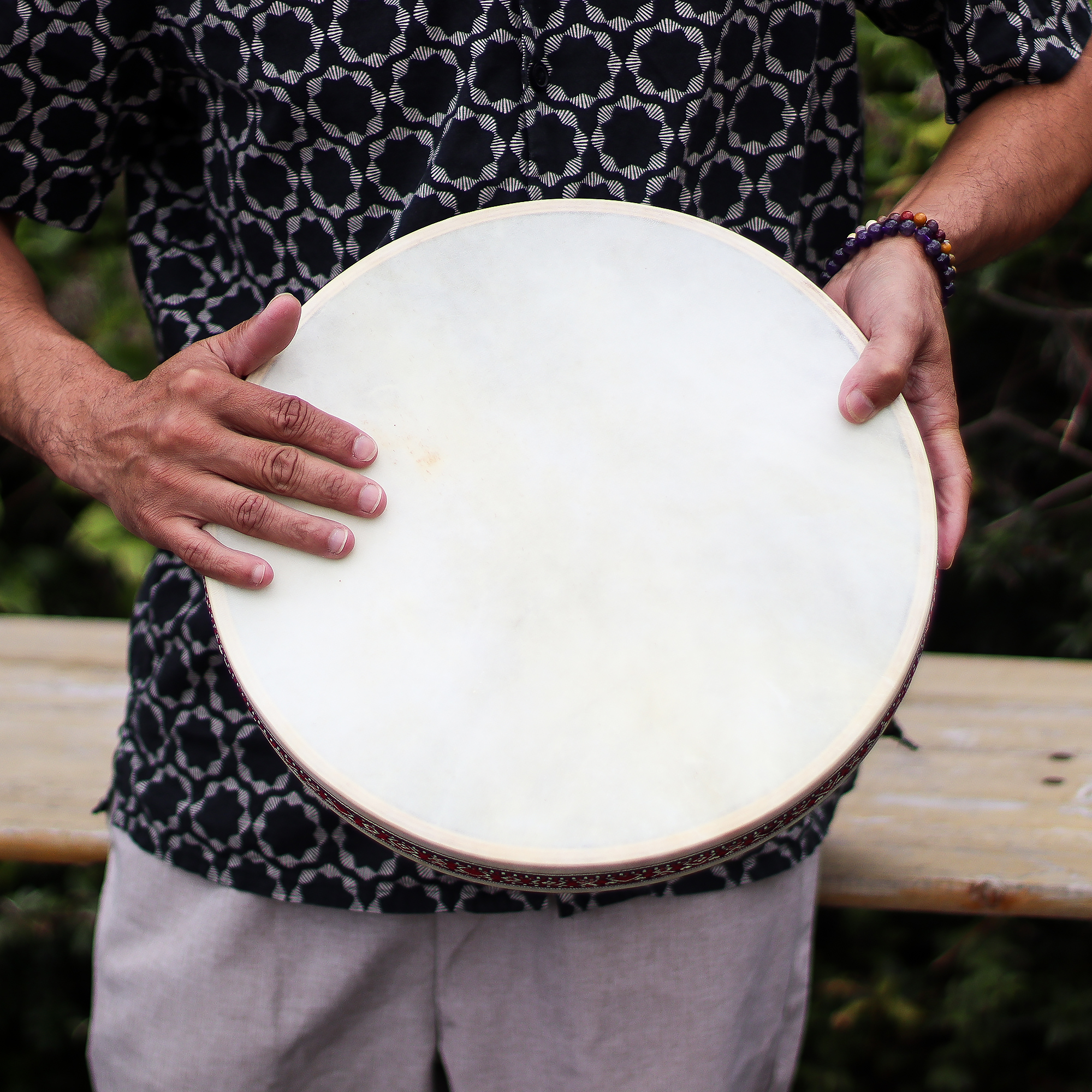 De 35cm Shaman Sound Healing Ocean Drum biedt een rustgevende en veelzijdige geluidsbeleving die luisteraars verbindt met het serene ritme van de natuur. Met de hand vervaardigd in Indonesië, met echt geitenleer gespannen over een prachtig versierd frame, bootst deze drum het kalmerende geluid van oceaangolven na wanneer hij voorzichtig wordt gekanteld of geschud. Hij kan ook met de hand bespeeld worden voor ritmisch drummen, waardoor het een veelzijdig instrument is dat zowel klankhealers als muzikanten aanspreekt.