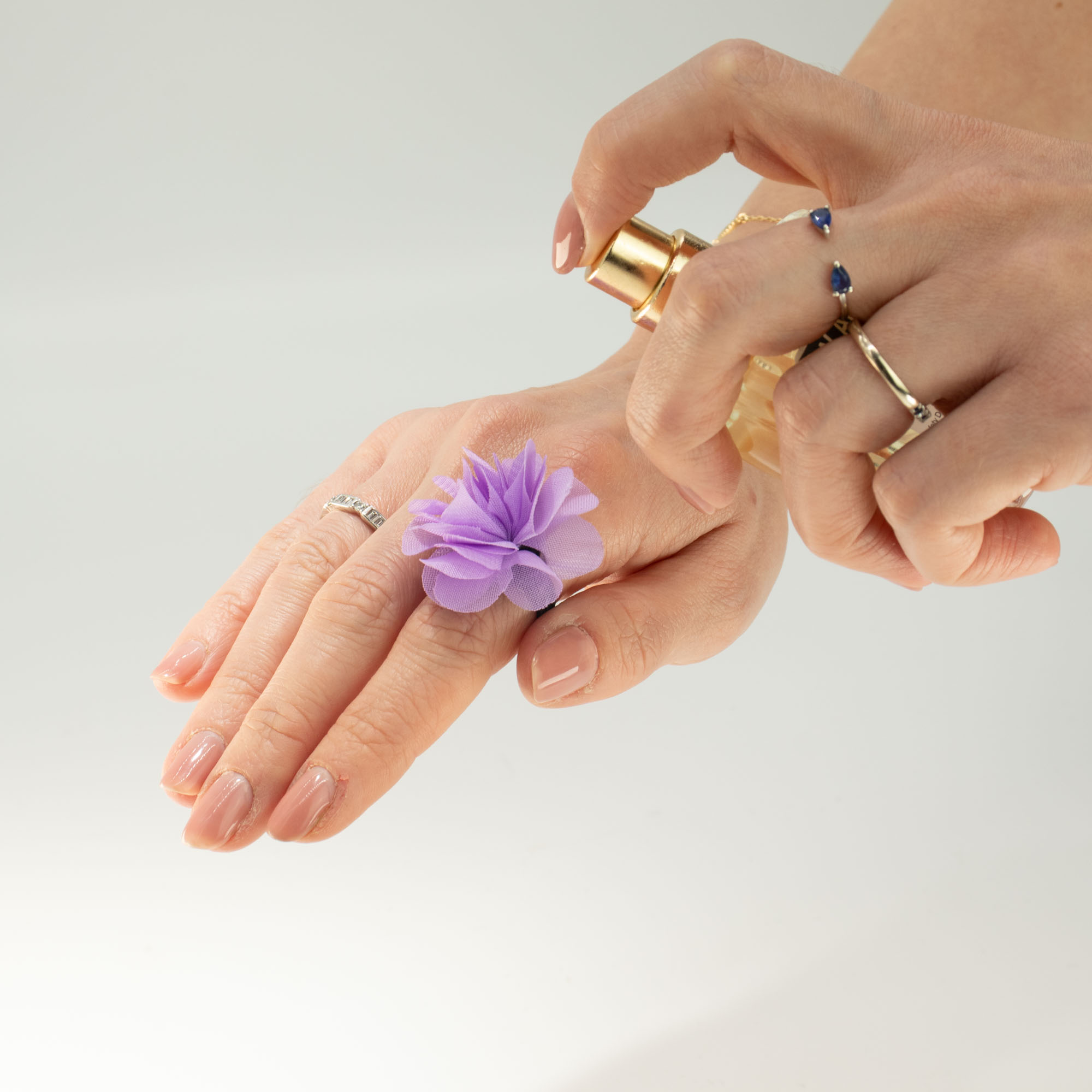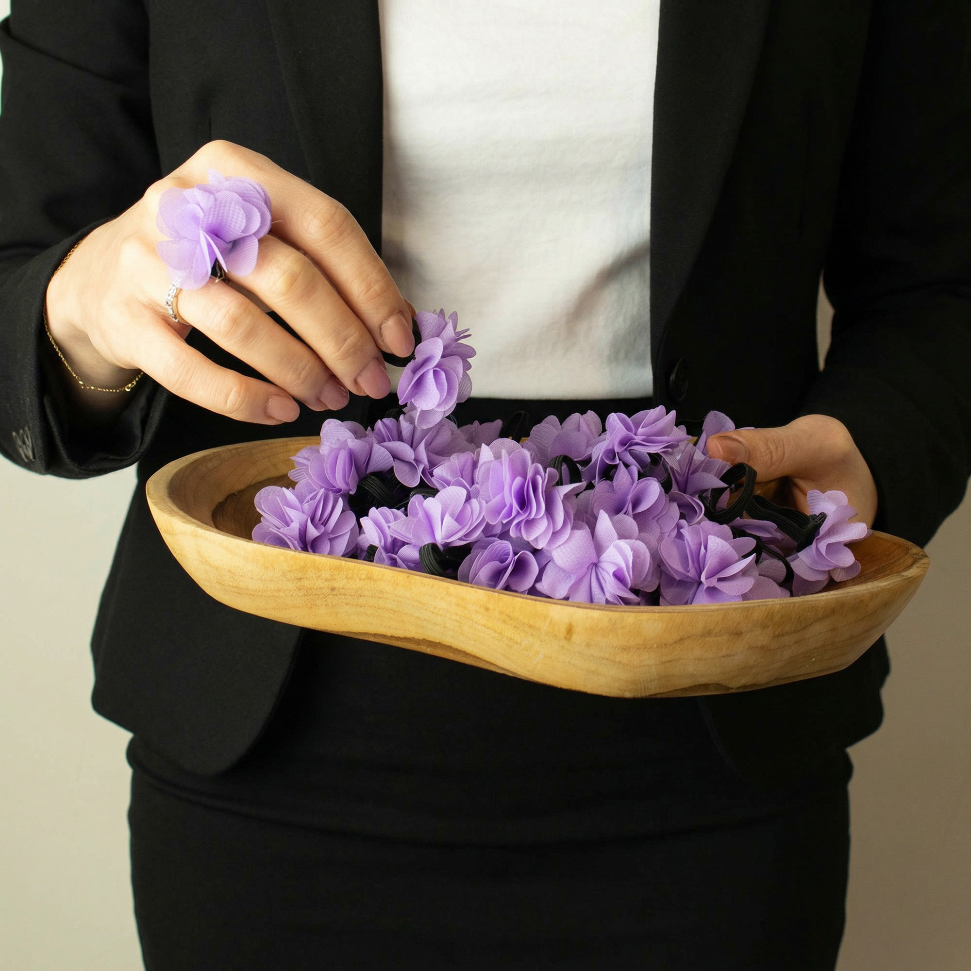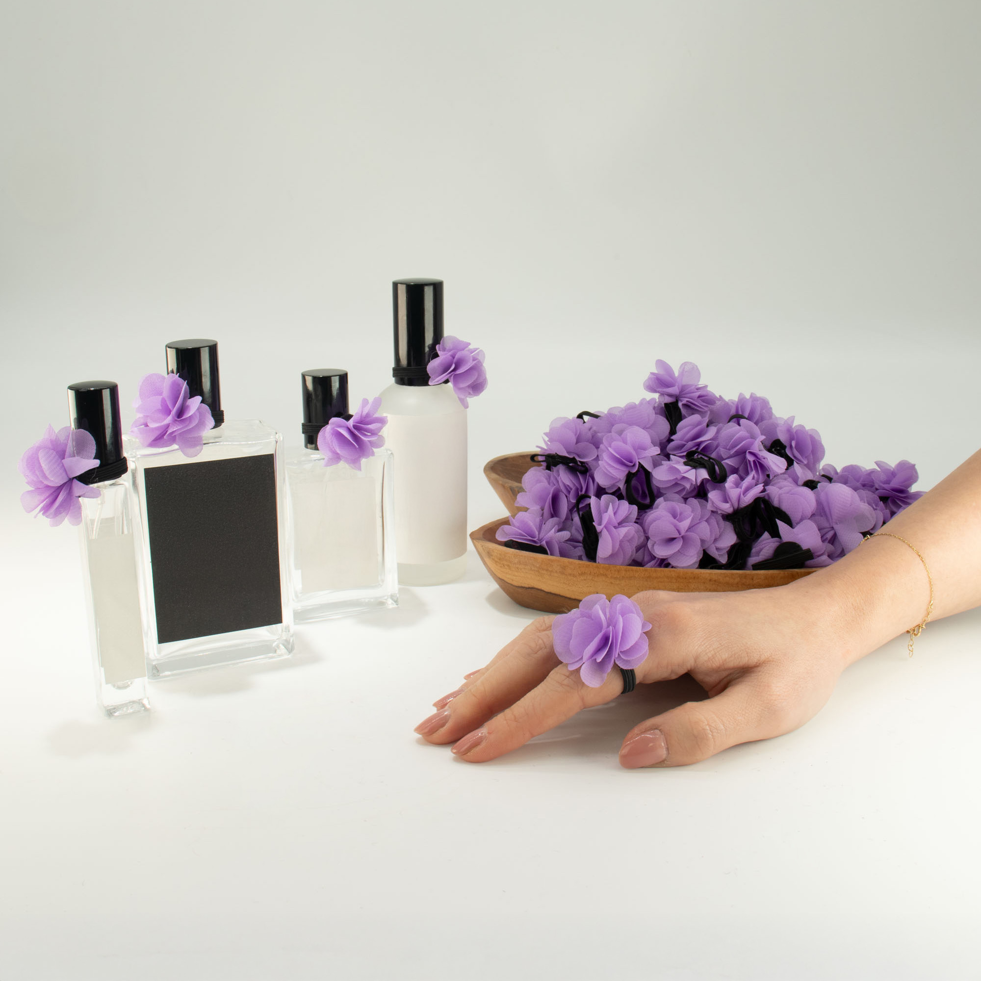 Deze Lavender Chiffon Geurkransen, geleverd in groothandelsverpakkingen van 100, bieden een zachte en visueel aantrekkelijke manier om geuren aan klanten te introduceren. Elke ring heeft een lichte chiffonbloem bevestigd aan een rekbaar elastisch bandje, ontworpen om geurolie of parfum vast te houden en de geur geleidelijk vrij te geven tijdens het dragen.
