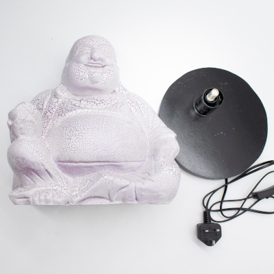 Breng een zachtere, sfeervolle toon met de Laughing Buddha Lamp Lavender Crackle Deze lamp is ontworpen om een subtiele visuele impact te creëren en combineert decoratieve uitstraling met een rustgevende, gekleurde gloed die natuurlijk in elke ruimte past.