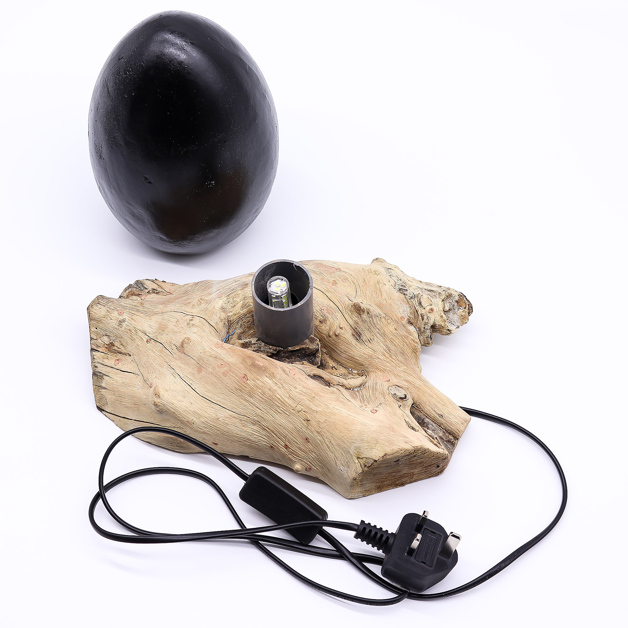 De kap rust op een natuurlijke Indonesische drijfhouten voet, wat zorgt voor een sculpturale en organische basis. Elk stuk hout is uniek gevormd door de natuur, waardoor elke lamp een eigen persoonlijkheid heeft—iets dat shoppers duidelijk herkennen en waarderen in handgemaakt woondesign. De verzonken LED-fitting houdt de lijn van de lamp strak en maakt het vervangen van de lichtbron eenvoudig.