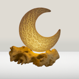 Voeg dit halvemaanontwerp toe aan je assortiment voor een sfeervolle lamp die zowel uitgeschakeld als verlicht een echte blikvanger is.