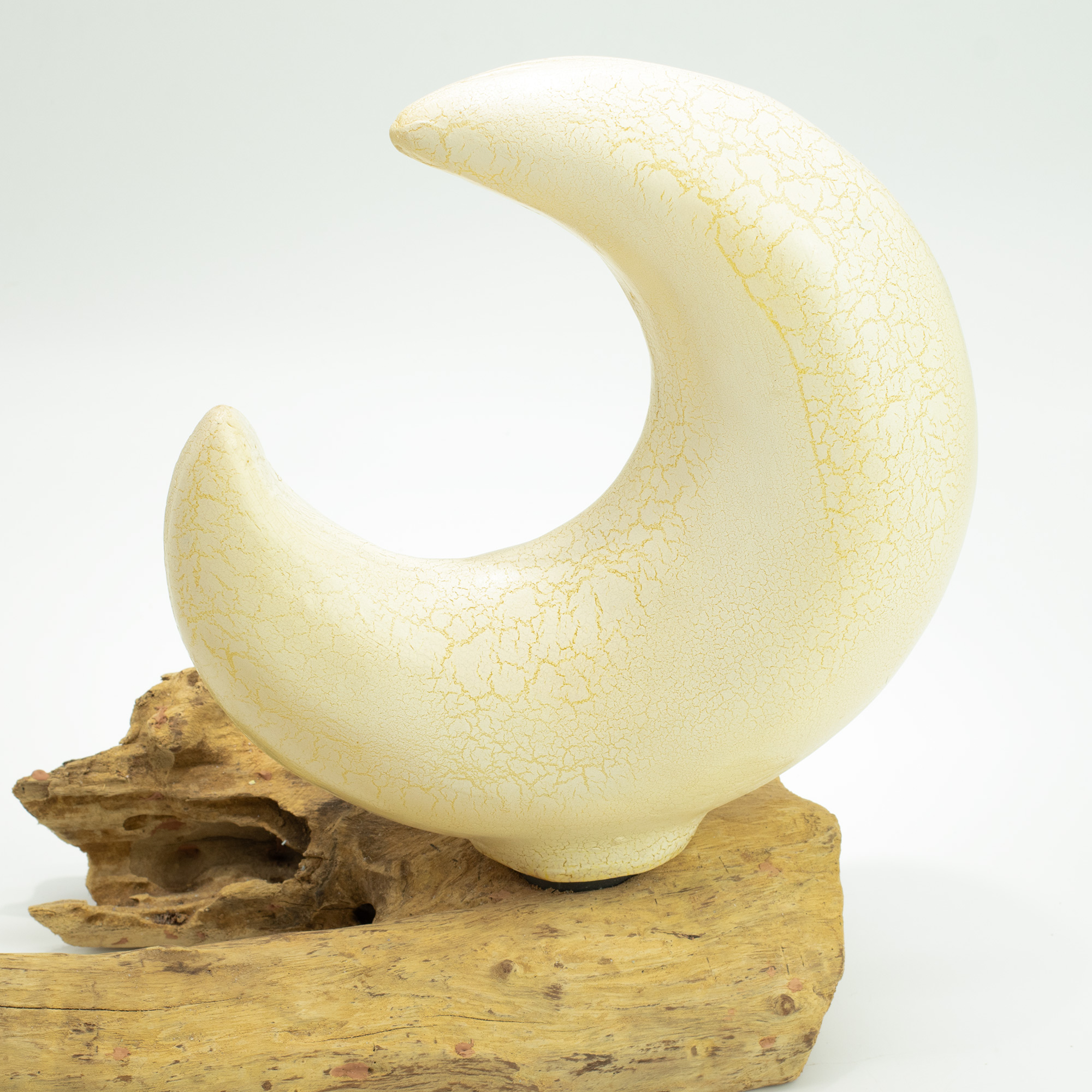 Handafgewerkte crackle glasvezel halvemaan kap Natuurlijke drijfhouten voet