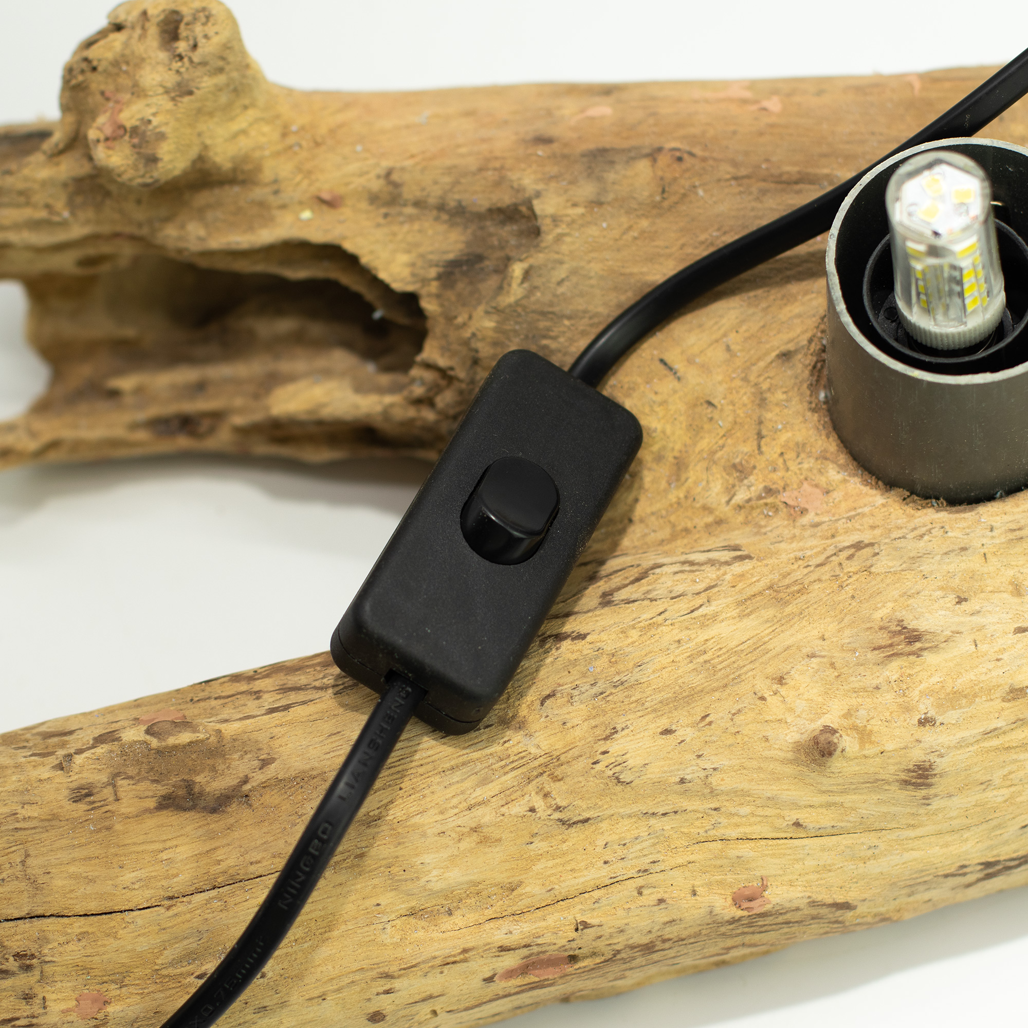 Geplaatst op een natuurlijke Indonesische drijfhouten voet heeft elke lamp zijn eigen organische vorm en textuur. Geen twee voetstukken zijn hetzelfde, wat elk exemplaar een uniek, handgemaakt karakter geeft. De LED-fitting is netjes in de voet verwerkt, waardoor het geheel strak oogt en eenvoudig te onderhouden is.
