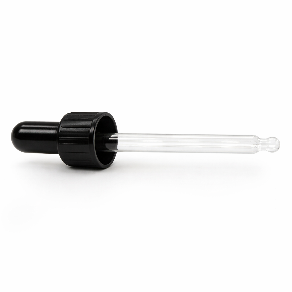 Deze glazen pipetdruppelaars met rechte punt en zwarte doppen zijn compatibel met glazen flessen van 10 ml.