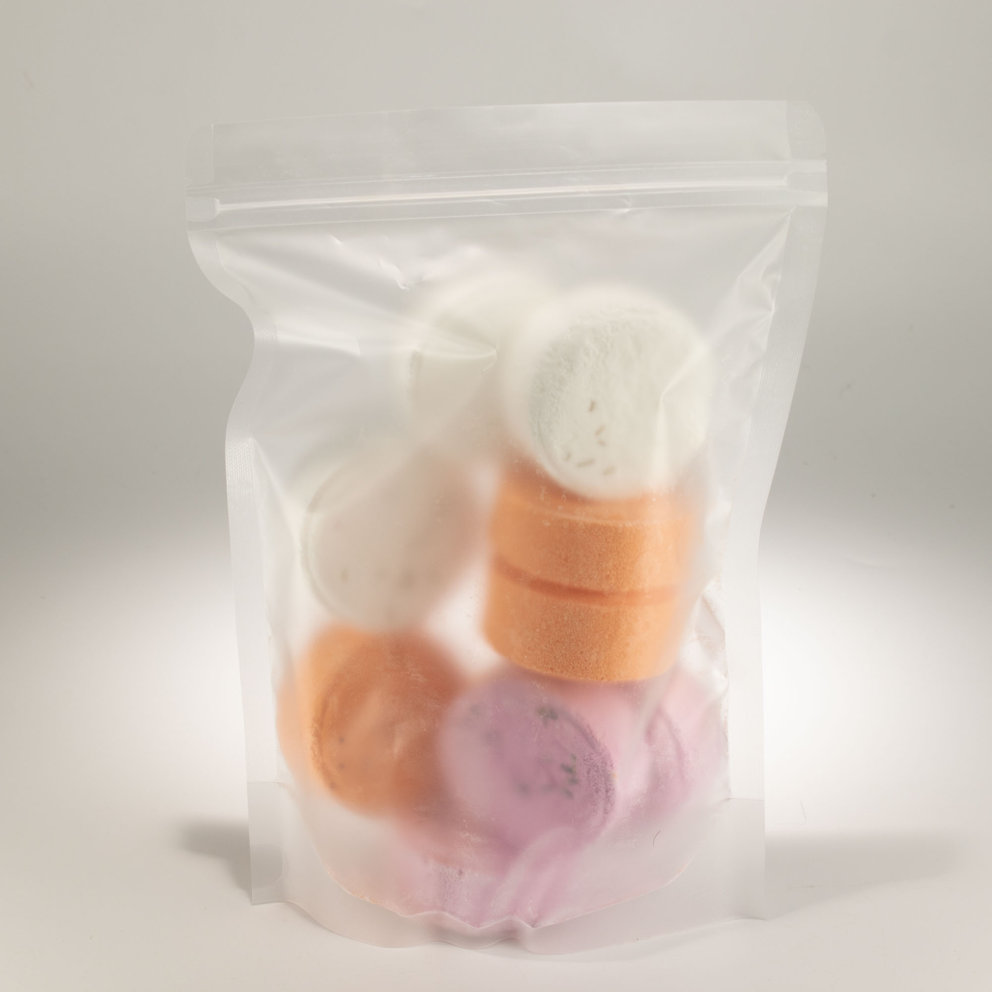 Het formaat van 18 × 26 × 4 cm biedt een ruime inhoud, waardoor deze zak geschikt is voor producten zoals badzouten, losse producten, poeders, gedroogde goederen of navulverpakkingen. Dankzij de platte bodem kan de zak rechtop staan, wat zorgt voor een nette en aantrekkelijke presentatie in het schap