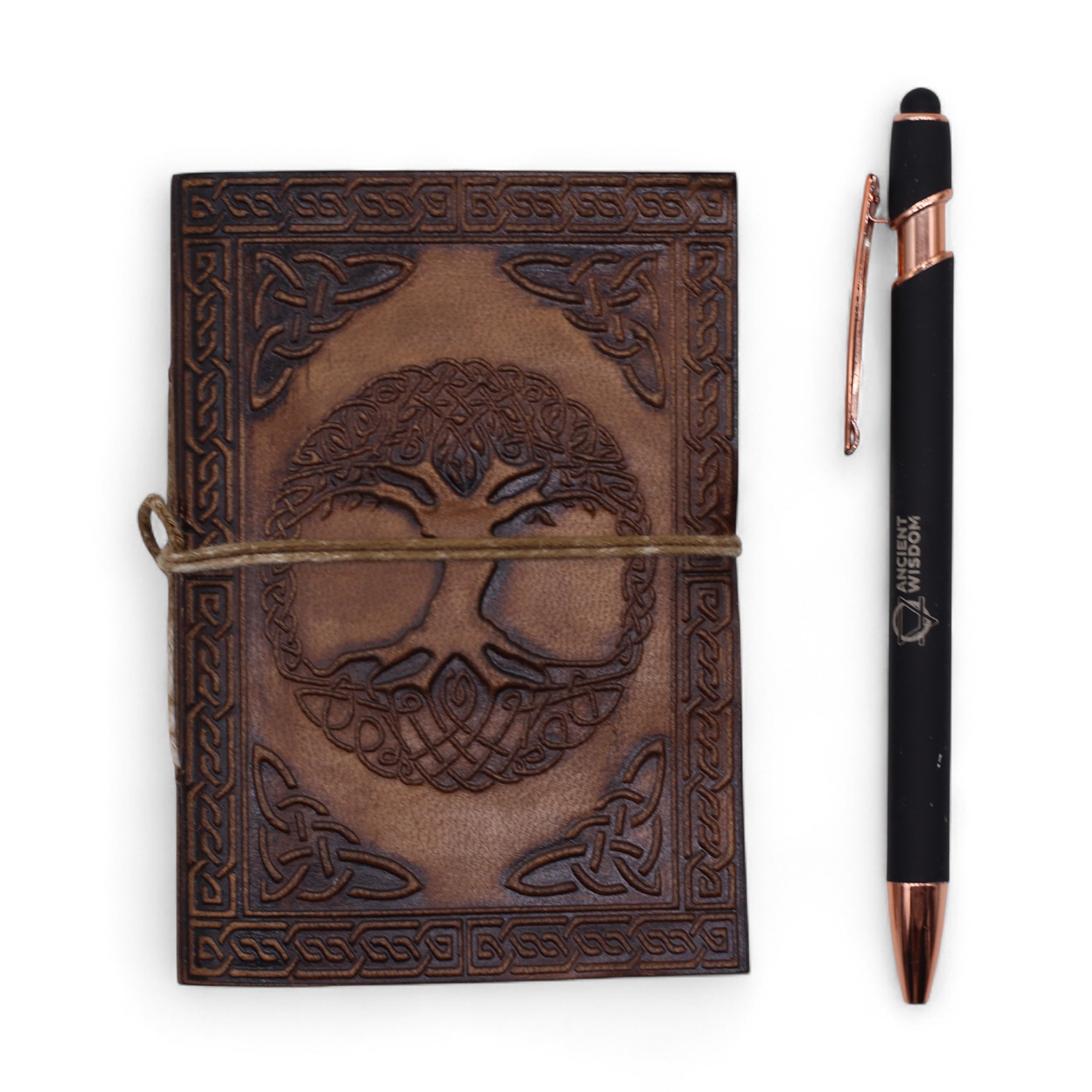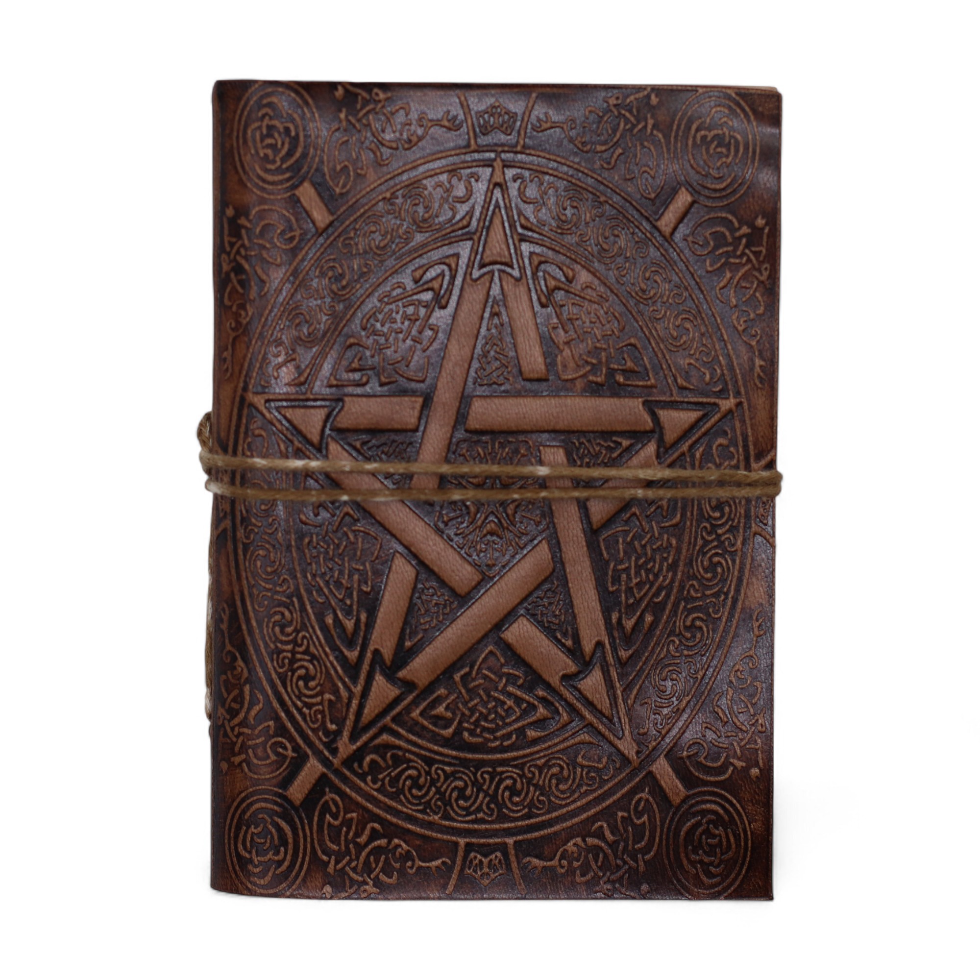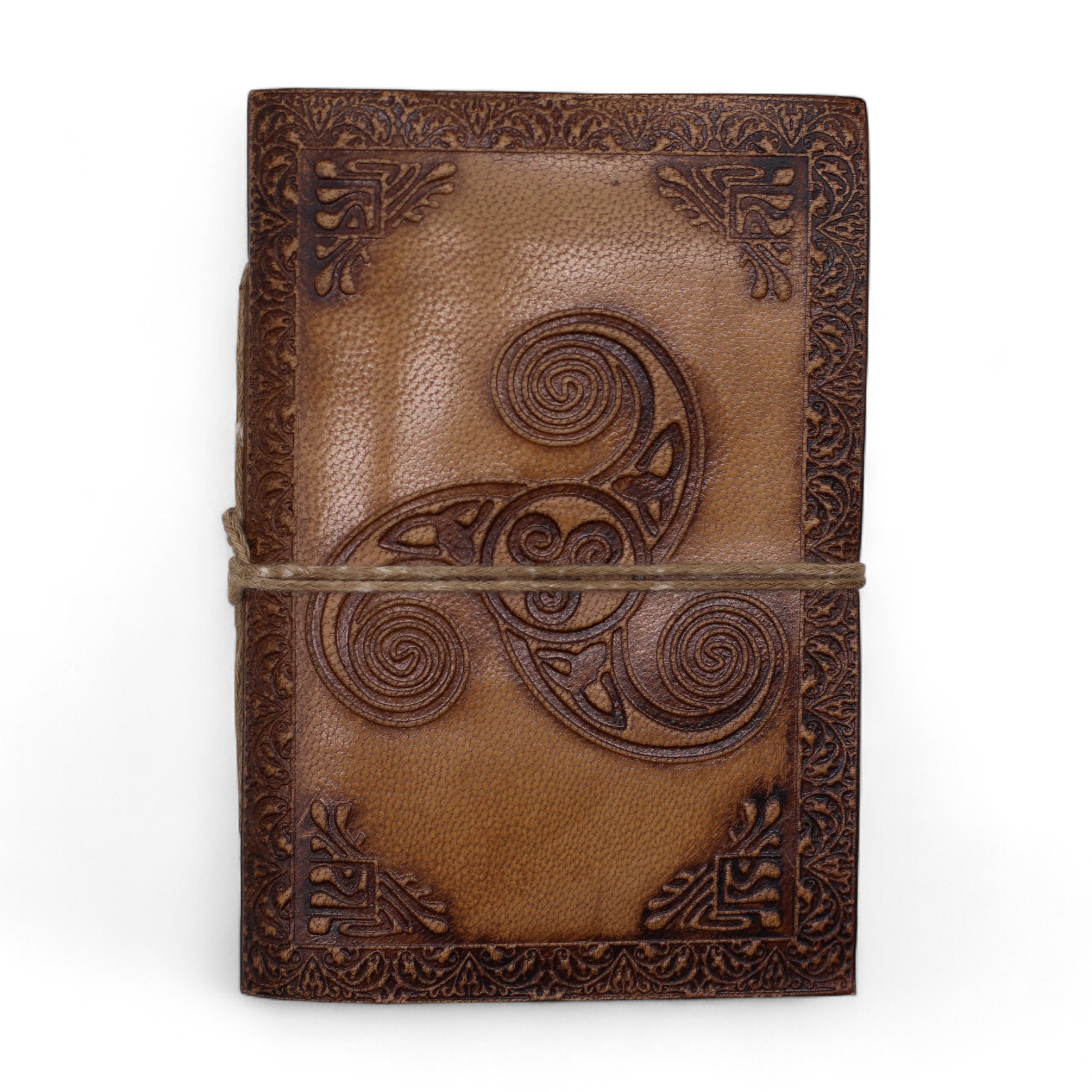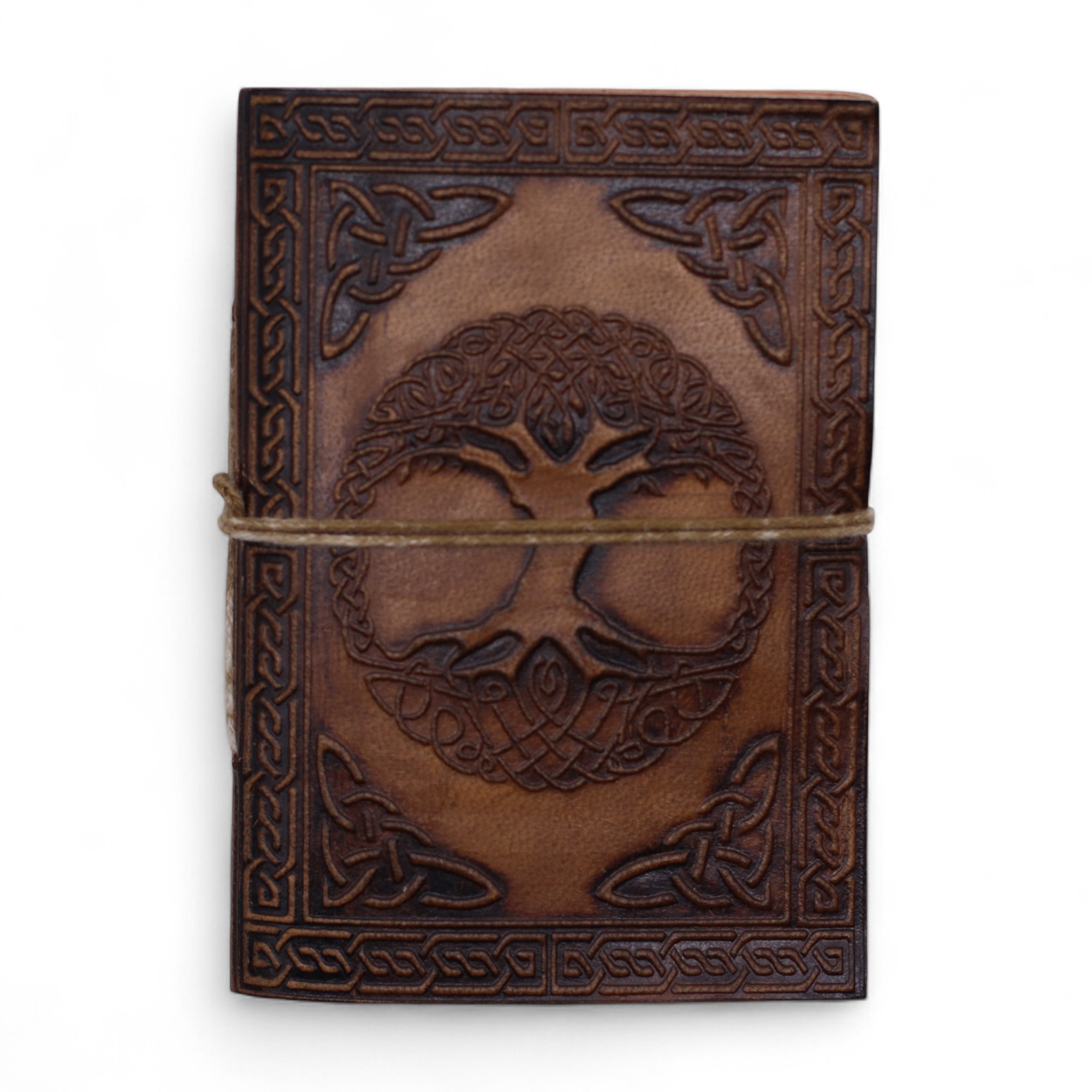Elk boekje is geperst met spirituele en mystieke motieven — zoals manen, draken en heilige symbolen — die staan voor begeleiding, intuïtie en balans. De assortimentsset biedt visuele diversiteit terwijl het handgemaakte, samenhangende uiterlijk behouden blijft.