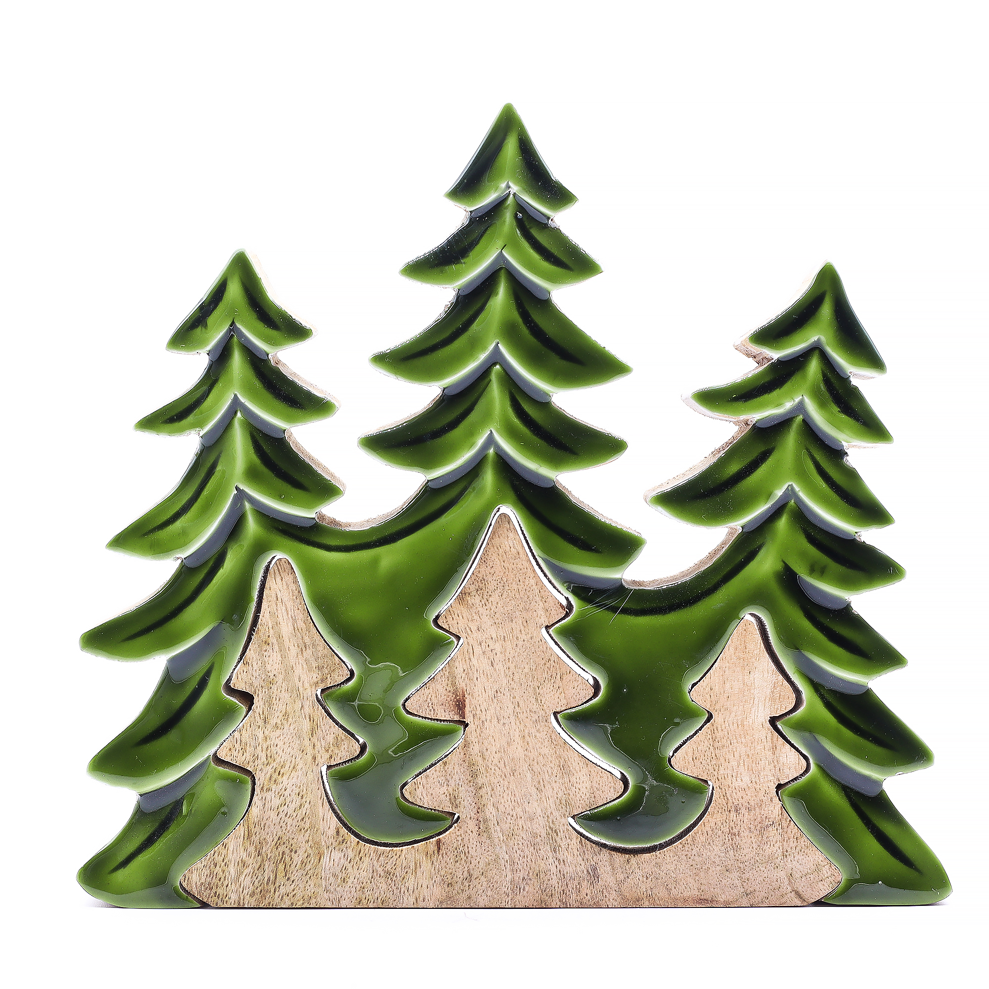 Deze opvallende Drie Bomen 3D Houten Decoratie brengt een krachtige dosis bosachtige charme in elke presentatie. Met de hand gesneden in India uit duurzaam mangohout, toont dit stuk een sprekend 3D-ontwerp van drie bomen. De rijke, glanzende emaille afwerking zorgt voor een harmonieuze combinatie van rustieke textuur en levendige groentinten. Fair trade en ethisch geproduceerd, is dit een ideaal middelpunt voor natuurthema’s of een betekenisvol geschenk.