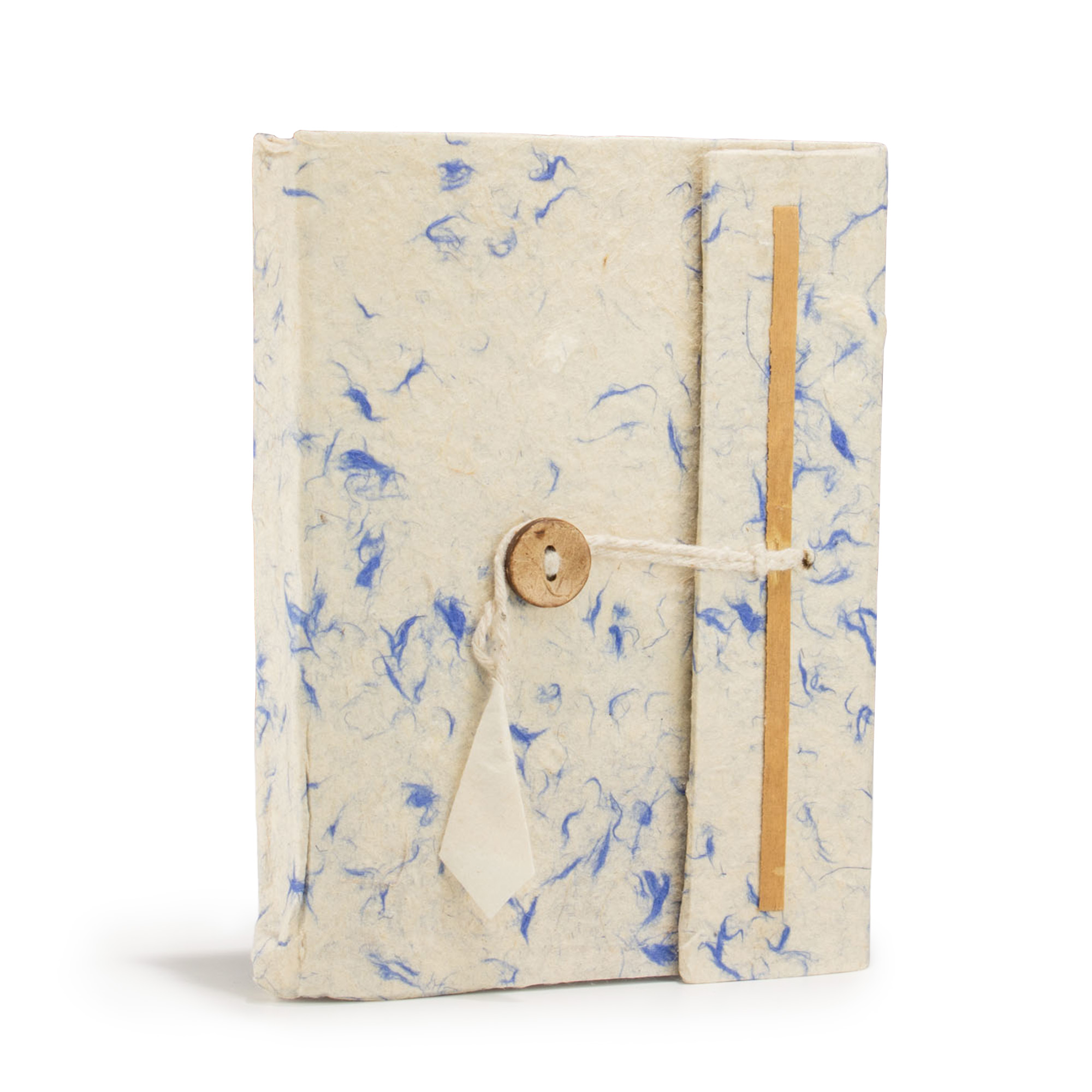 Zacht van textuur met vlekken van blauw katoen, dit middelgrote Lokta notitieboek biedt handgemaakte charme in een praktisch formaat.