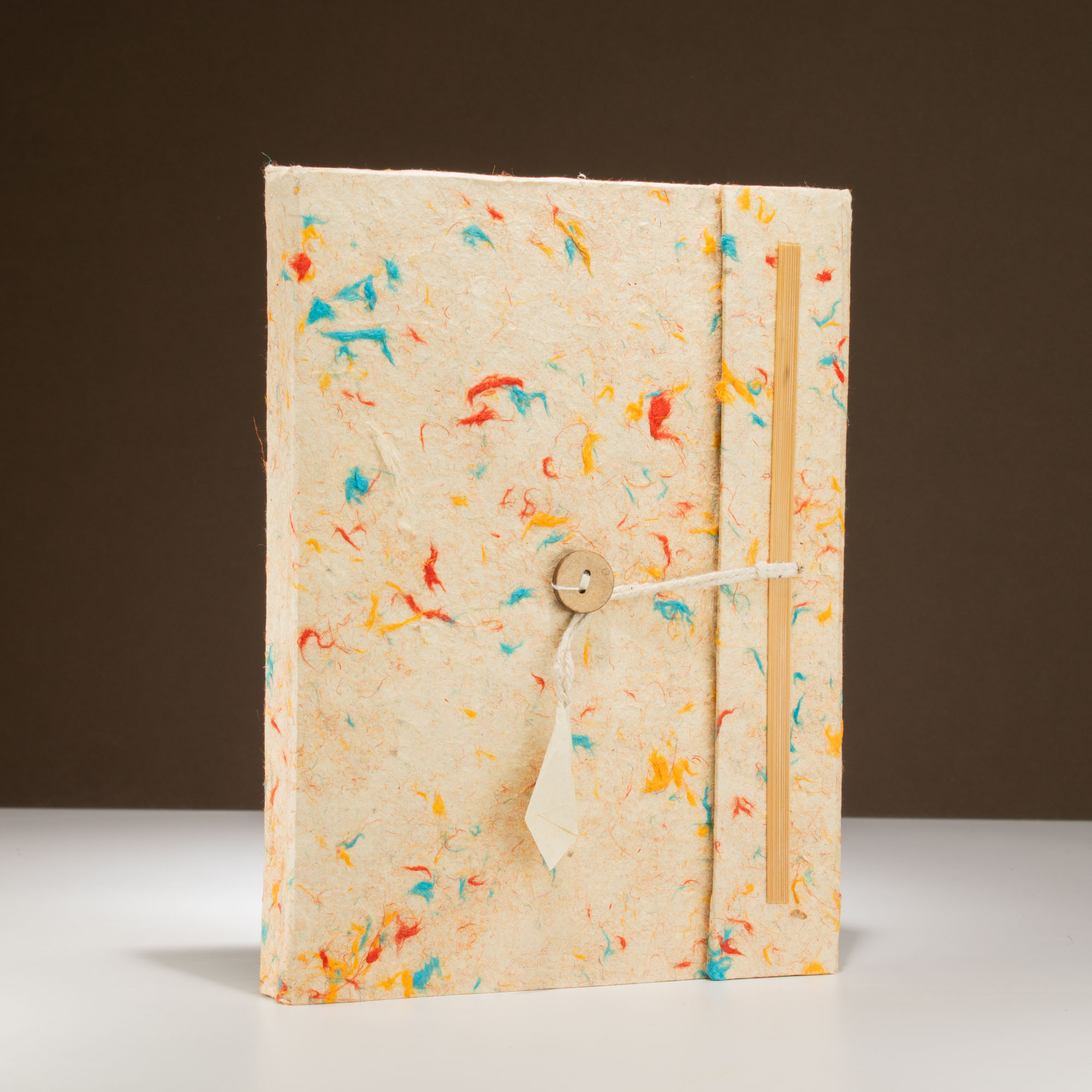 Gemaakt van gerecyclede katoenvezels, heeft dit grote Lokta notitieboek een natuurlijk gespikkelde omslag in zachte, aardse tinten. Elk notitieboek is licht verschillend door de organische materialen die zijn gebruikt. Binnenin bevinden zich 45 blanco pagina’s Lokta papier, perfect voor schrijven, journaling of schetsen.