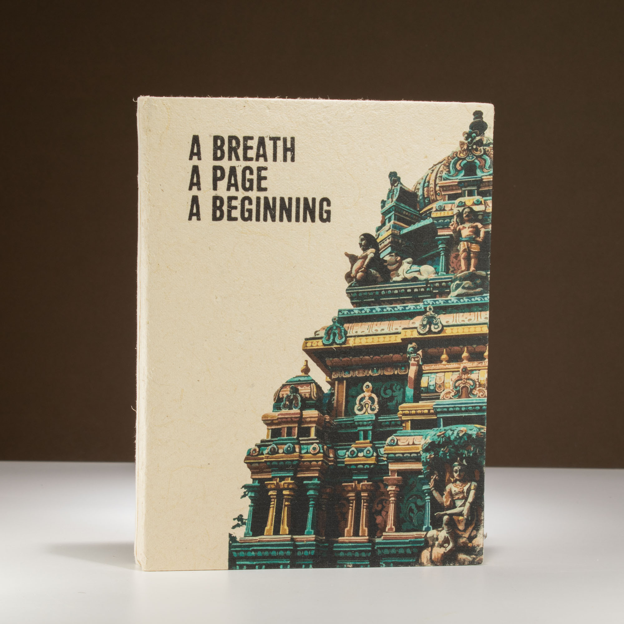 Rustig en poëtisch, dit notitieboek heeft een architecturaal tempelmotief gecombineerd met de boodschap “A Breath, A Page, A Beginning,” die rustige focus en persoonlijke vernieuwing oproept. Het is een stuk dat klanten aanspreekt die op zoek zijn naar schoonheid en betekenis in hun schrijfgerei.