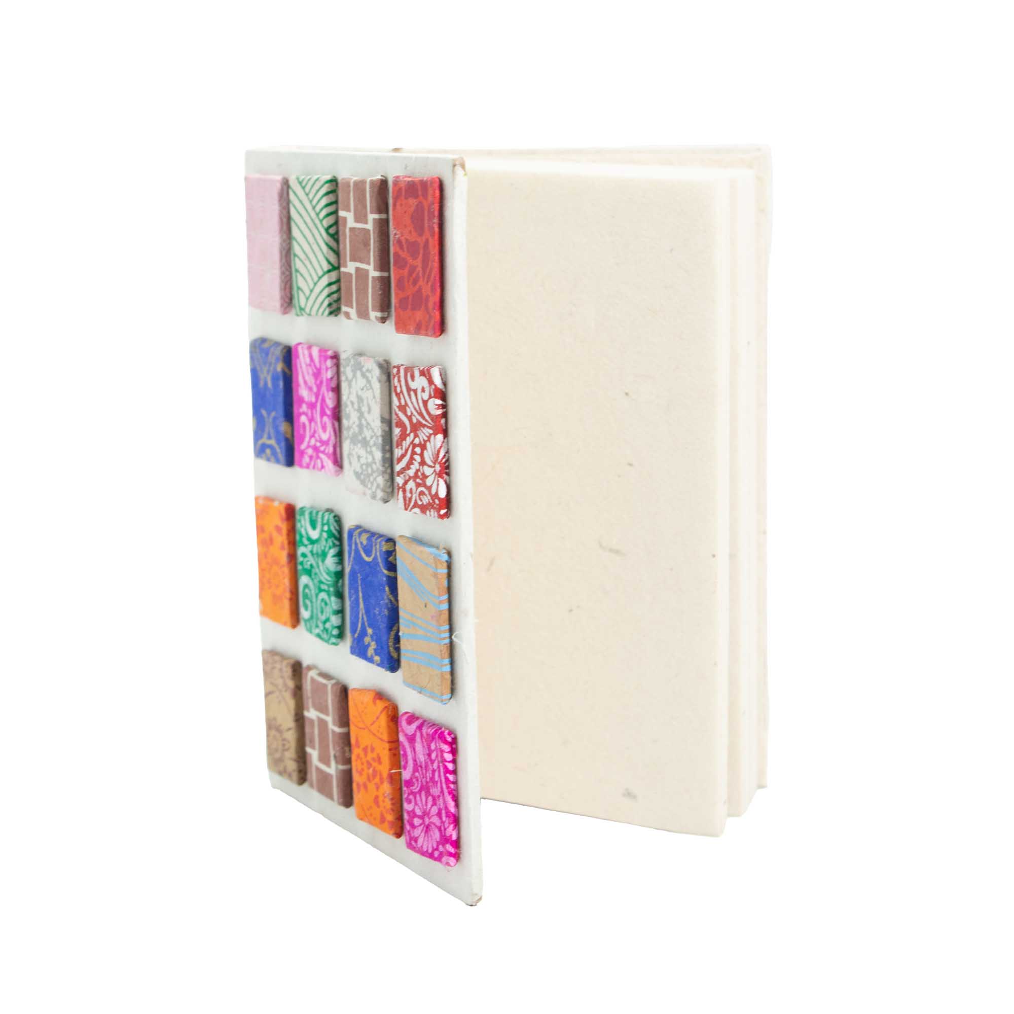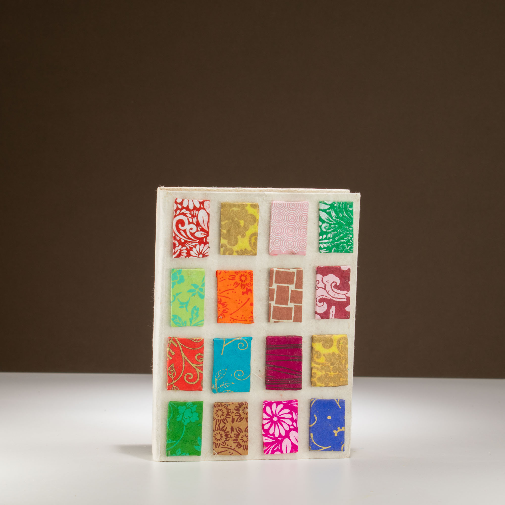Deze natuurlijke uitvoering van het Mini Tiles notitieboek brengt het ontwerp terug tot de essentie, zonder detail te verliezen. Op een basis van Lokta papier komen de afzonderlijke patroonpanelen zachter en meer textuurrijk tot hun recht, waardoor de kleuren subtiel aanwezig zijn zonder te overheersen.