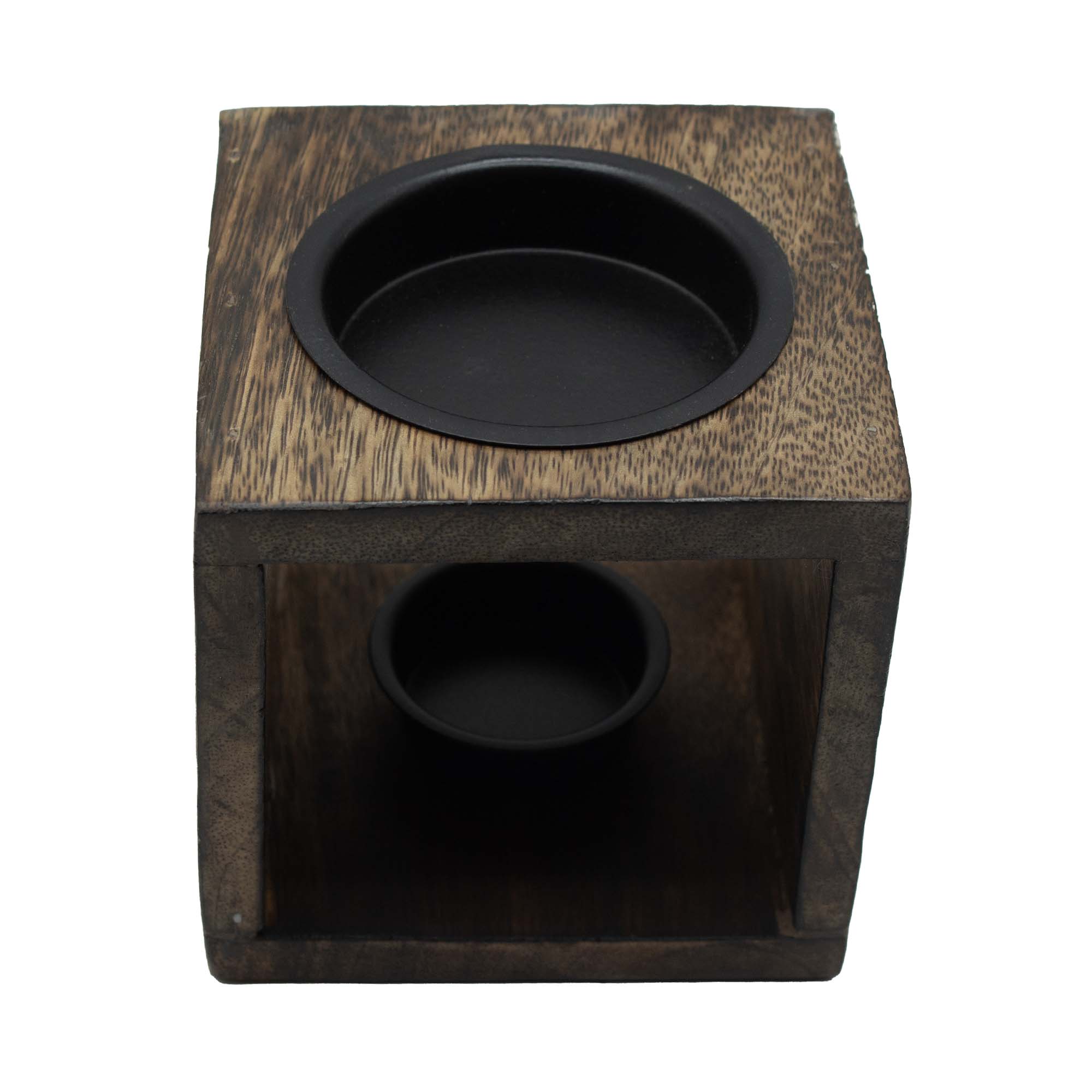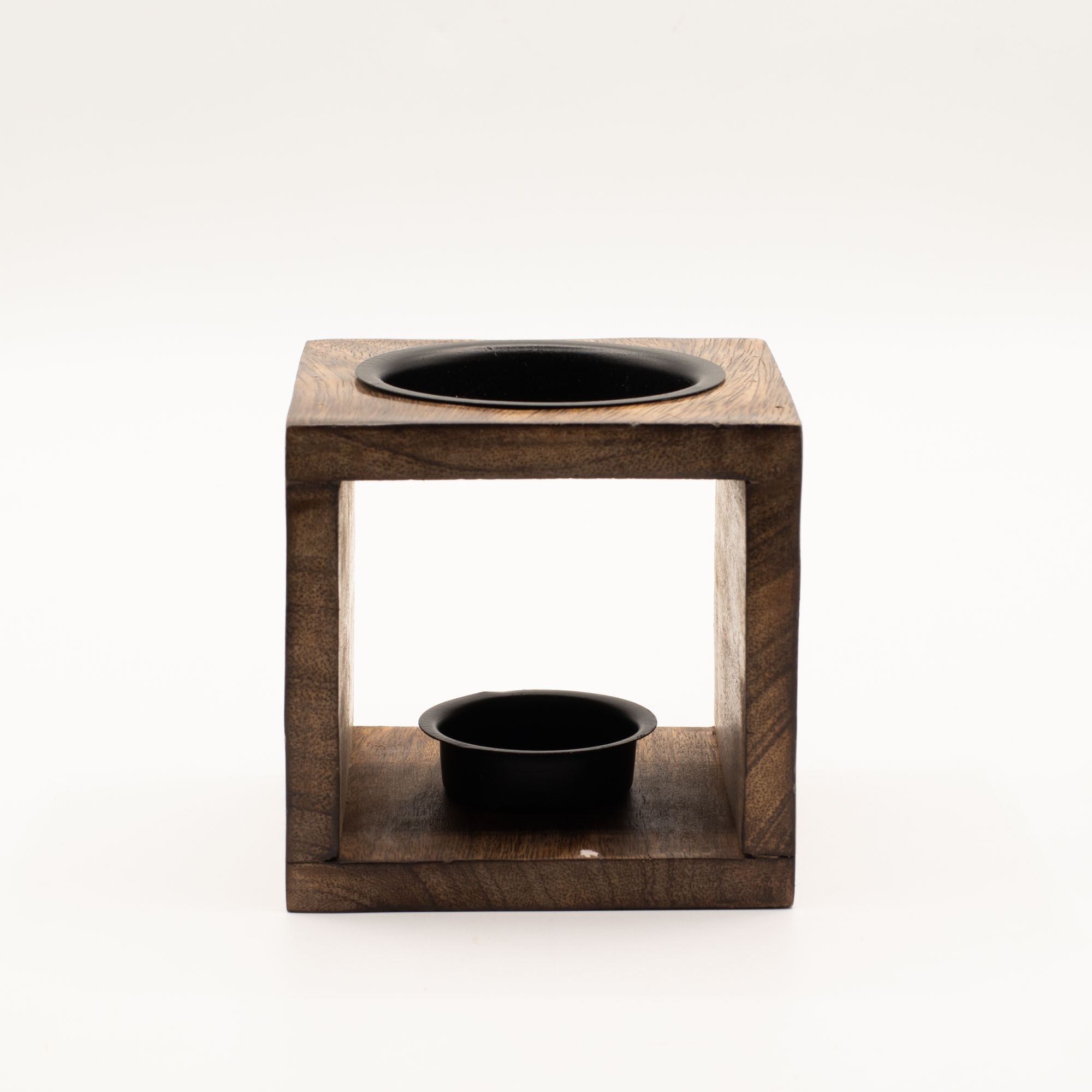 Met het Yin Yang-symbool vertegenwoordigt deze olieverbrander balans en harmonie. Gemaakt van mangohout, zorgt de eenvoudige vierkante vorm ervoor dat het ontwerp opvalt zonder de ruimte te overheersen.
