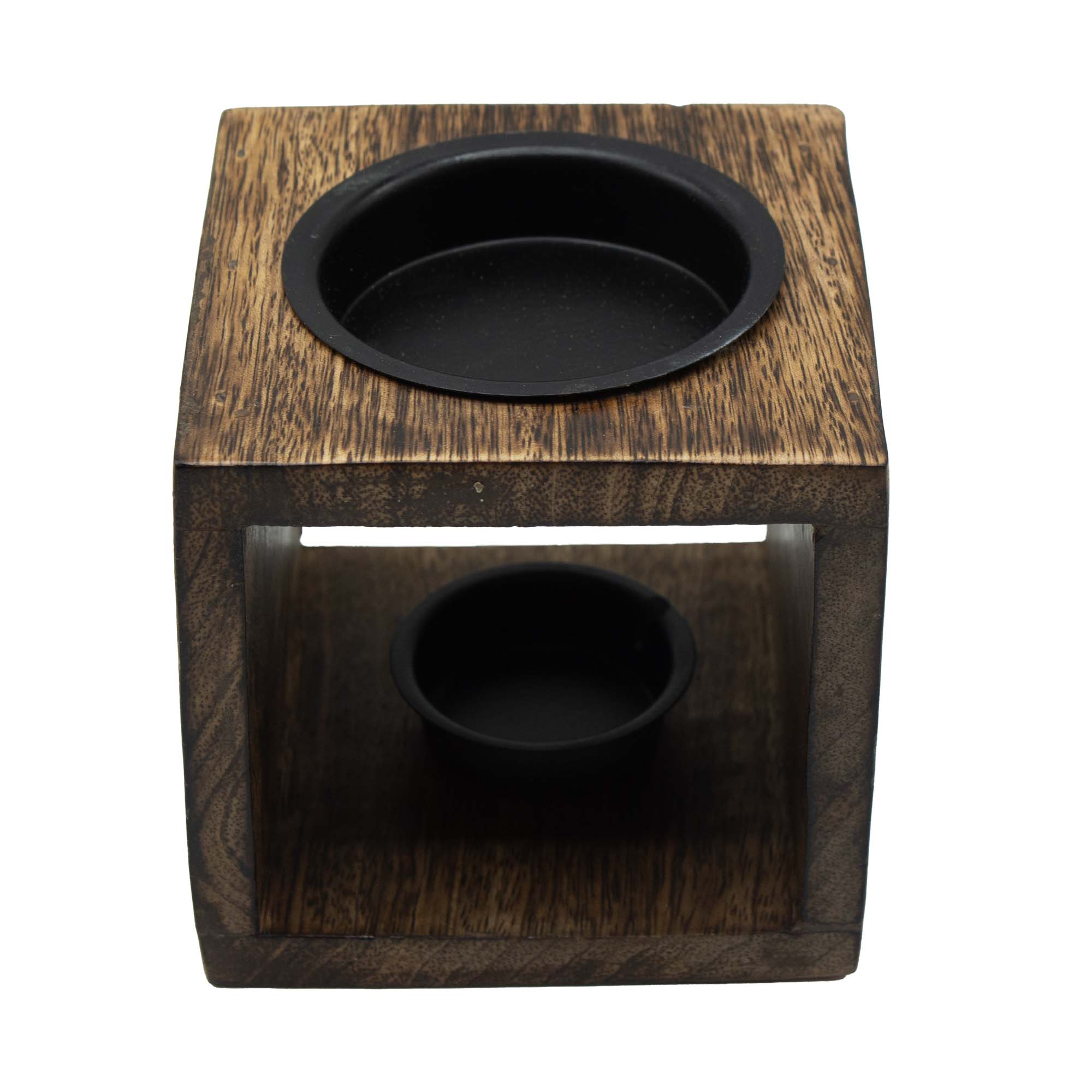 Deze vierkante olieverbrander van mangohout toont een gegraveerd olifantenmotief, dat kracht, wijsheid en geluk symboliseert. Het compacte formaat maakt het eenvoudig te plaatsen op planken, bijzettafels of kleinere ruimtes, terwijl het toch volledig functioneel blijft.