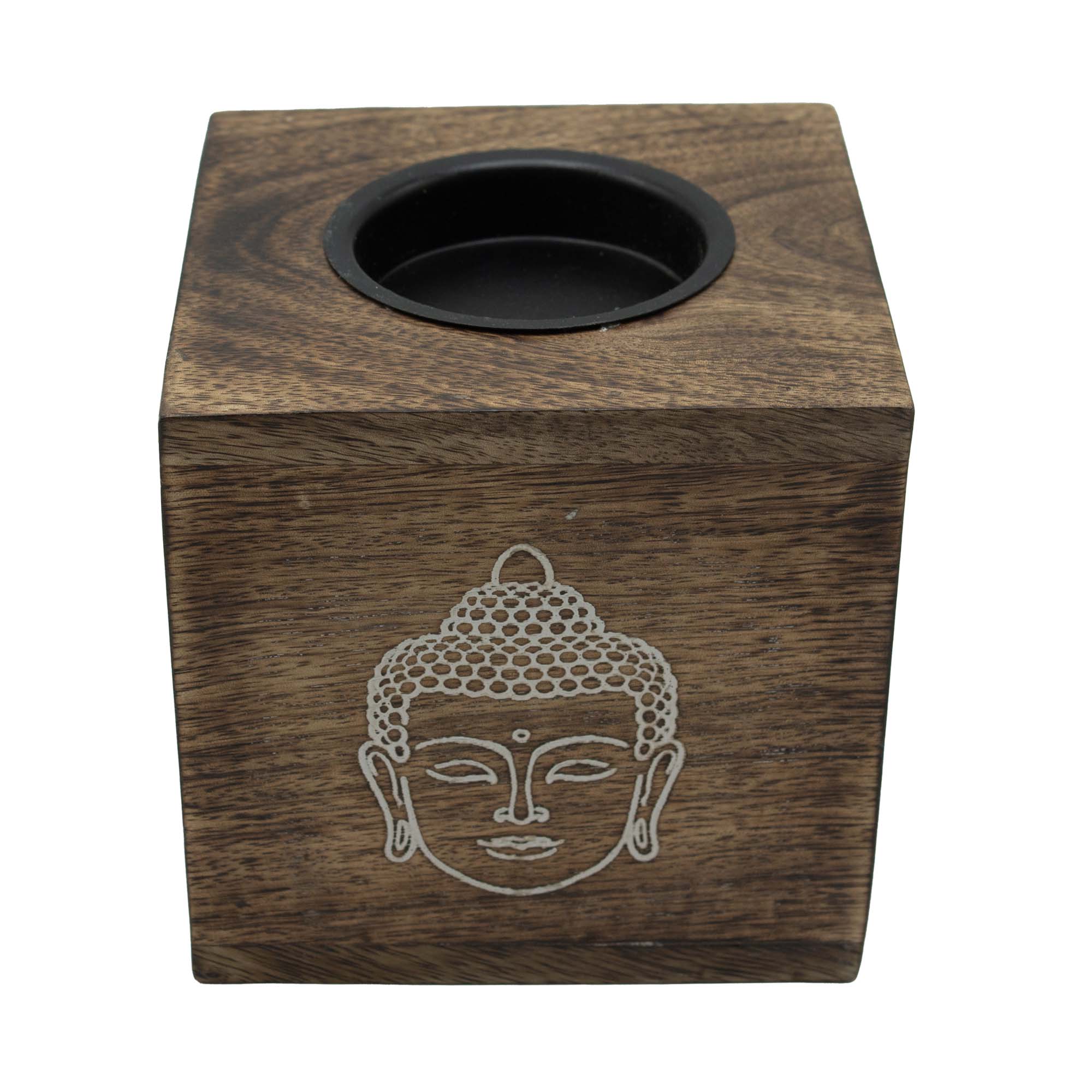 Deze olieverbrander is voorzien van een gegraveerd Boeddhagezicht en biedt een kalm en sereen decoratief accent. Gemaakt van massief mangohout, geeft de vierkante vorm een evenwichtige, stevige uitstraling die gemakkelijk past in zowel moderne als traditionele interieurs.