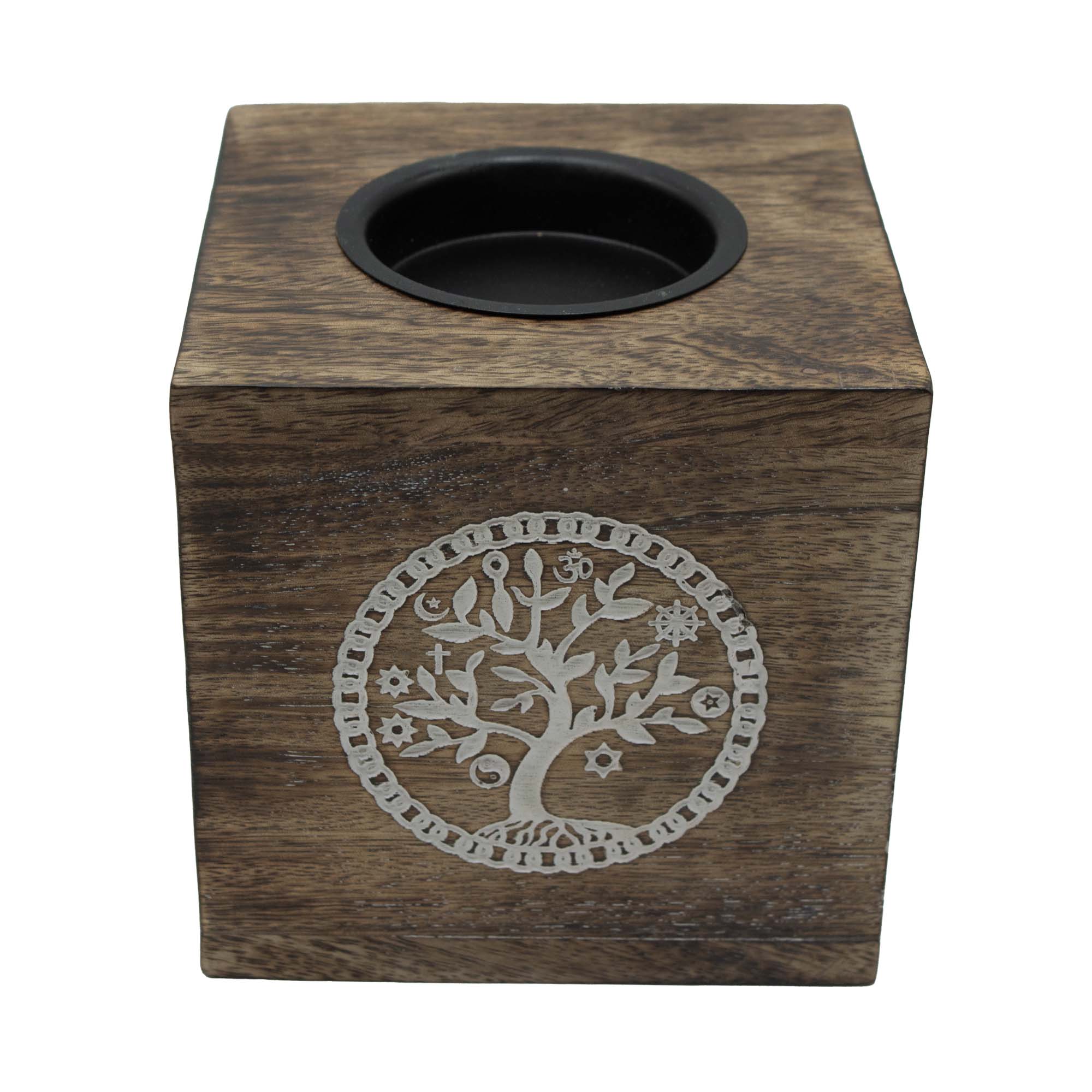 Deze grote vierkante olieverbrander is voorzien van het Levensboom-design en symboliseert groei, verbinding en continuïteit. Gemaakt van mangohout, heeft elk stuk natuurlijke variaties die karakter en warmte toevoegen.