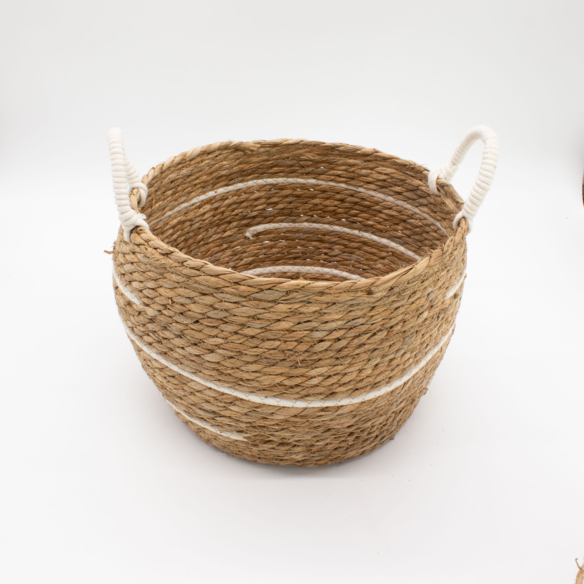 Deze manden zijn een betrouwbare keuze voor retailers die gespecialiseerd zijn in natuurlijke woondecoratie, en combineren visuele aantrekkingskracht met praktische bruikbaarheid in de winkel. Ontworpen om zowel als display-items als voor dagelijks opbergen te dienen, creëren de zachte streepdetailleringen een nette, neutrale uitstraling die eenvoudig te presenteren is gedurende alle seizoenen en productcategorieën, van textiel en geschenksets tot planten en verpakte goederen.