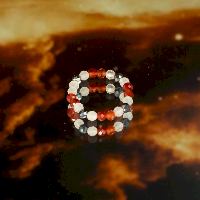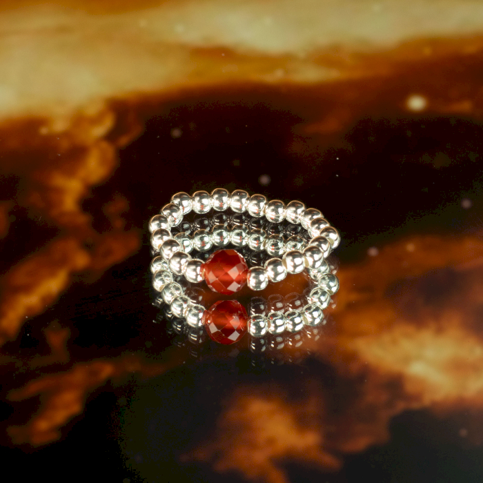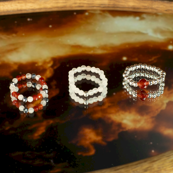 Samen gedragen vormen de ringen een samenhangend statement dat staat voor verbinding, toewijding en blijvende energie. De balans tussen zachte blostinten en rijke roodtinten geeft de set een romantische uitstraling zonder zwaar aan te voelen, waardoor zij geschikt is voor zowel dagelijks dragen als cadeaumomenten.
