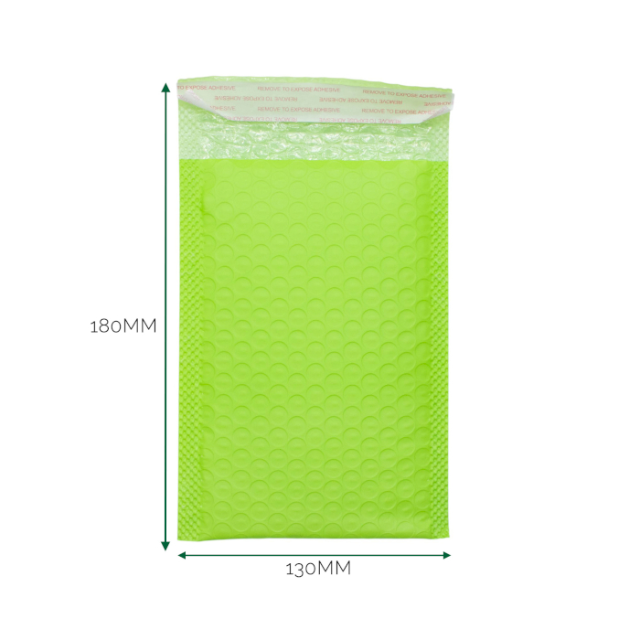 Deze 130 × 180 mm groene poly luchtkussenenveloppen zijn ontworpen voor compacte zendingen die baat hebben bij goede zichtbaarheid en betrouwbare bescherming. De opvallende kleur maakt kleine pakketten gemakkelijk herkenbaar, terwijl de inhoud veilig wordt omsloten.