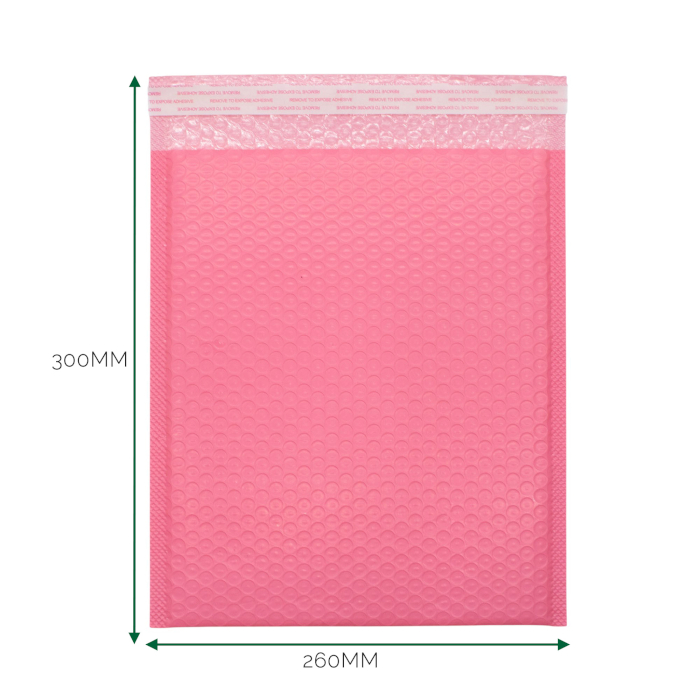 Deze 260 × 300 mm roze poly luchtkussenenveloppen zijn ontworpen voor grotere bestellingen die zowel visuele impact als betrouwbare verwerking vereisen. Het bredere formaat biedt comfortabel plaats aan kleding, doosjes en gebundelde producten zonder de inhoud te forceren of onnodig gewicht toe te voegen.