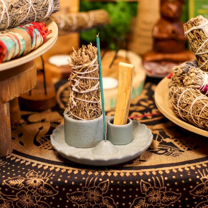 Met zorg vervaardigd, is hij ontworpen om Palo Santo-stokjes, smudgebundels en wierookstokjes te dragen — de as blijft netjes opgevangen terwijl hij schoonheid toevoegt aan elke ruimte. De gladde geglazuurde afwerking en de bloemvorm maken hem zowel decoratief als praktisch, perfect voor meditatiehoeken, yogastudio’s of gezellige interieurs.