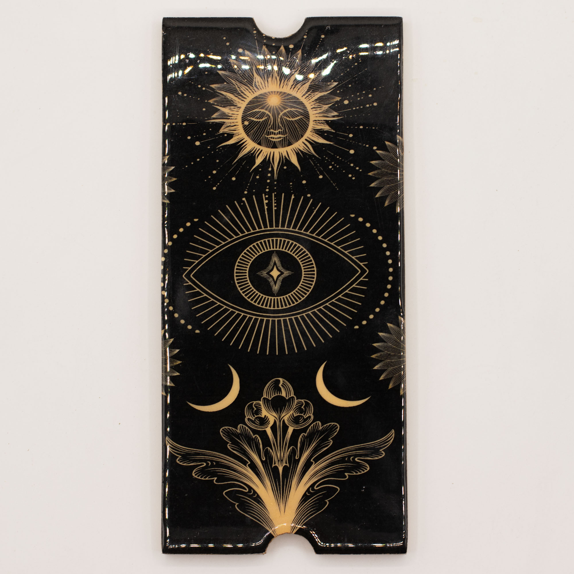 Het donker gegraveerde paneel zorgt voor contrast en diepte, waardoor deze versie een dramatische, opvallende uitstraling krijgt. Een sterke optie voor retailers die een premium tarotaccessoire willen aanbieden met zowel visuele onderscheidendheid als dagelijkse functionaliteit.