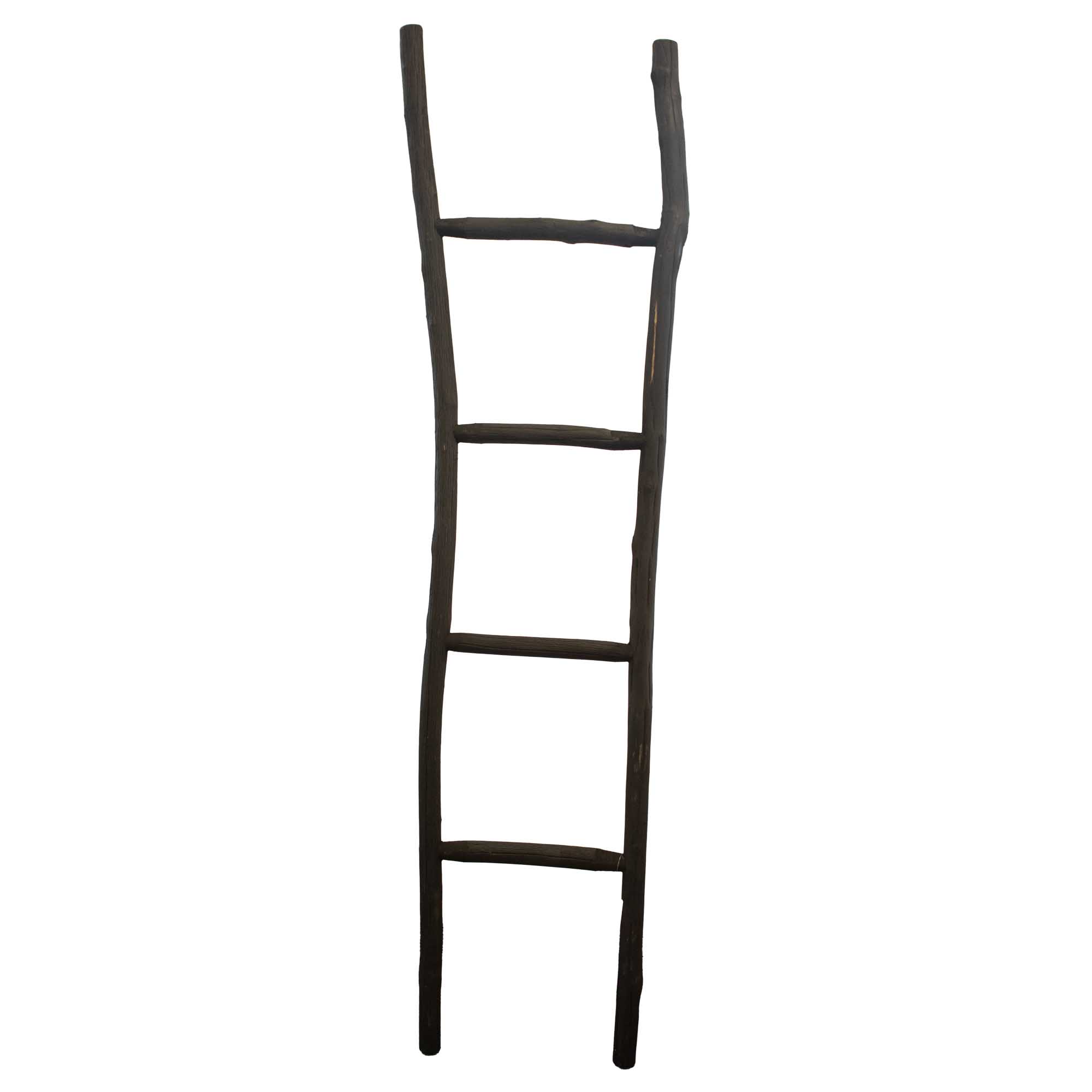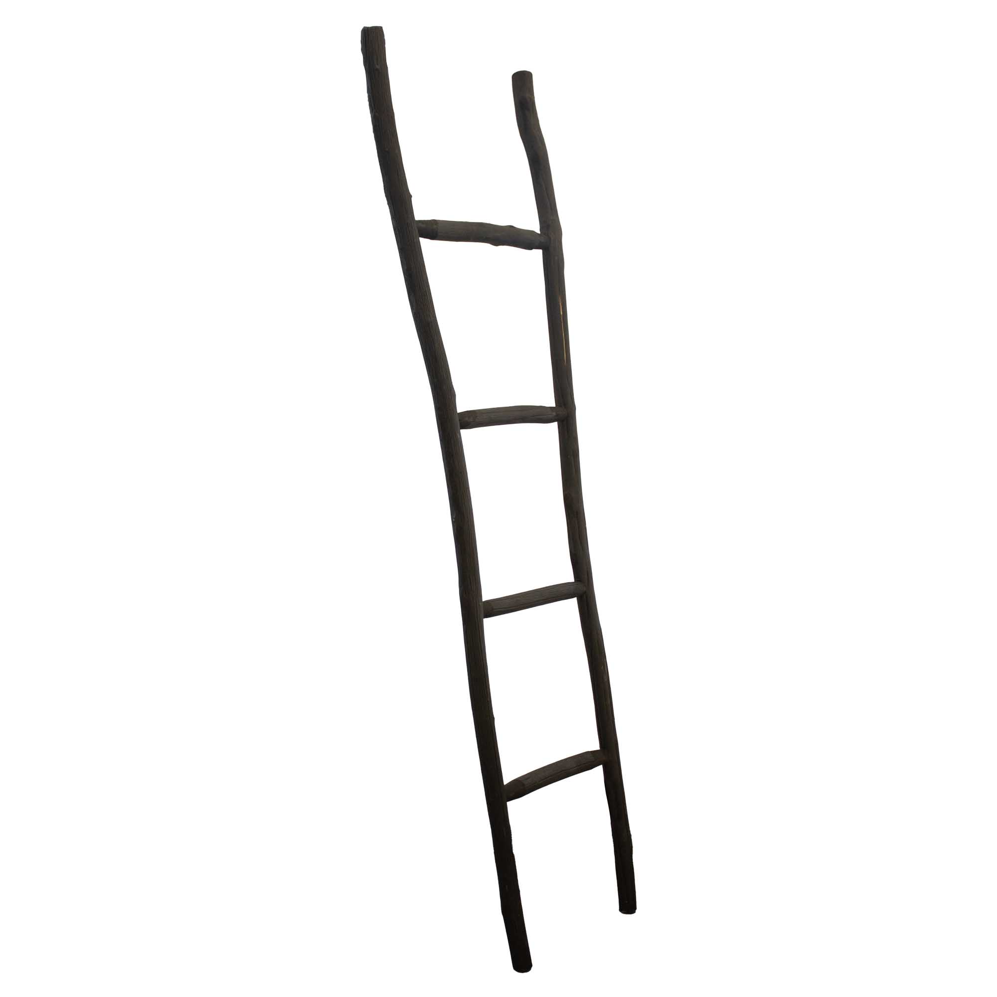 De ladder is vervaardigd uit stevig kemu hout en afgewerkt in diep zwart, waarbij de natuurlijke houtstructuur subtiel zichtbaar blijft. Ontworpen voor decoratief gebruik en ideaal om handdoeken, plaids of accessoires te presenteren, of om tegen een muur te plaatsen als opvallend statementstuk.
