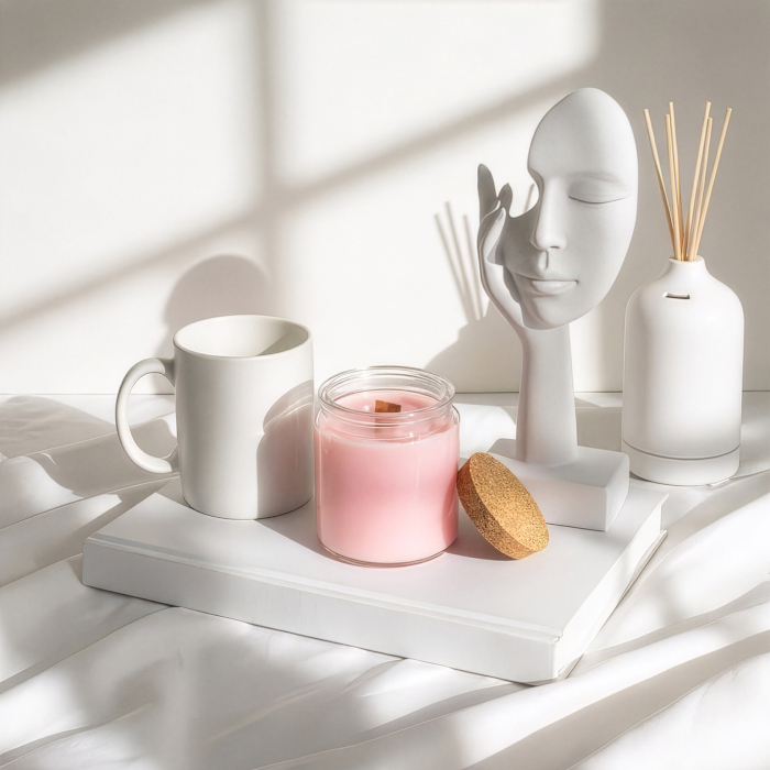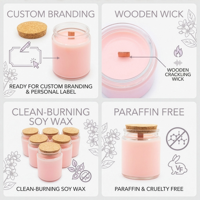 Breng een zachte florale uitstraling in je huisgeurcollectie met de Jasmine Glade Sojakaars met Houten Lont. Ontwikkeld voor retailers die hun eigen merkassortiment opbouwen, wordt deze kaars geleverd in een ongeëtiketteerd, klaar-voor-branding formaat, waardoor het eenvoudig is om een verfijnd geurproduct onder je eigen label te introduceren. De heldere glazen pot in combinatie met een natuurlijke kurkdeksel vormt een neutrale en elegante basis, zodat jouw branding centraal staat.