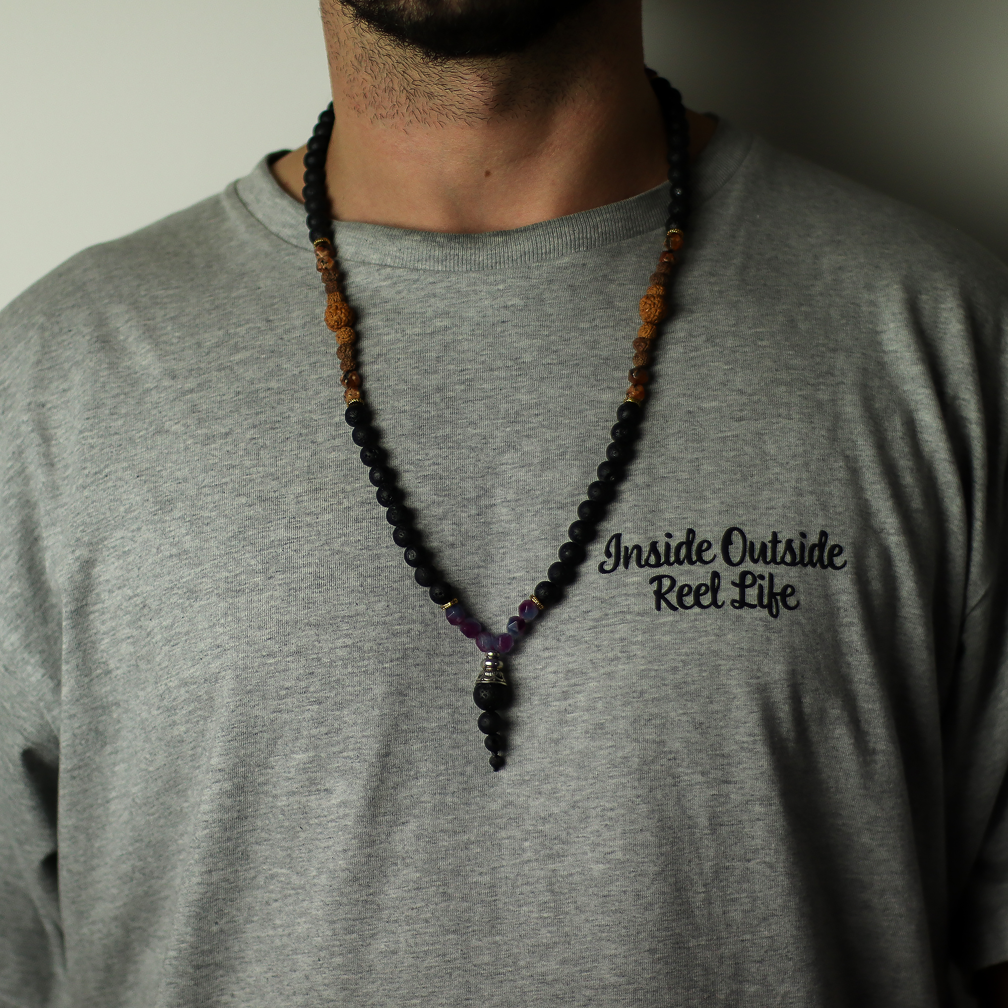 De donkere lavastenen staan voor aarding en transformatie, terwijl de diepe tinten de moed symboliseren om je eigen schaduw onder ogen te zien.