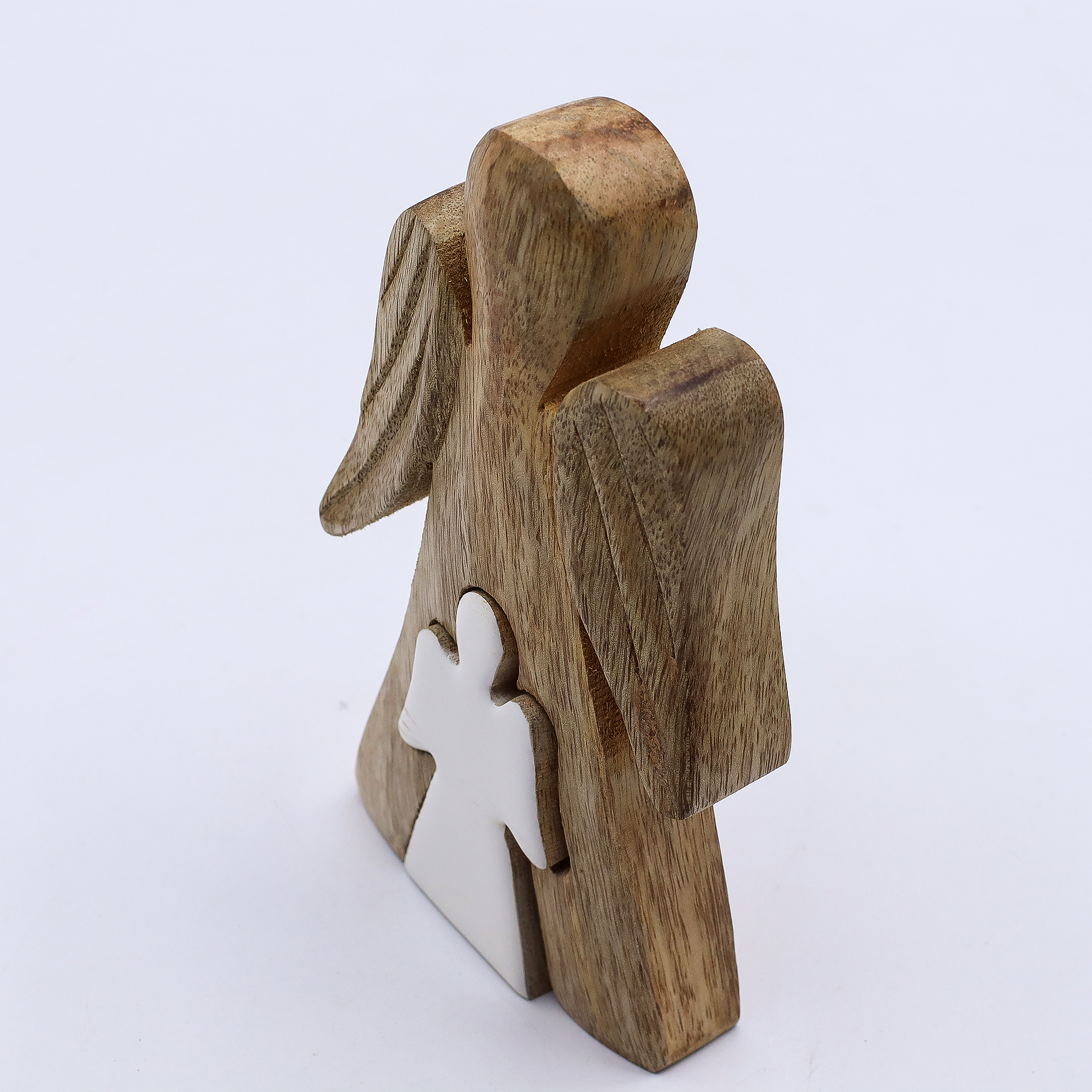 Deze opvallende 15 cm Mango Houten Engel – Witte Emaille heeft een uniek engel-in-engel ontwerp dat tijdloze vorm combineert met een moderne uitstraling. Met de hand gesneden in India uit duurzaam mangohout, is dit stuk afgewerkt met een gladde witte emaillelaag die het elegante silhouet extra benadrukt. Elk exemplaar is fair trade geproduceerd en individueel vervaardigd. Deze engel is een uitstekende keuze voor eigentijdse decoratie, betekenisvolle geschenken of als blikvanger in kerst- en paaspresentaties.