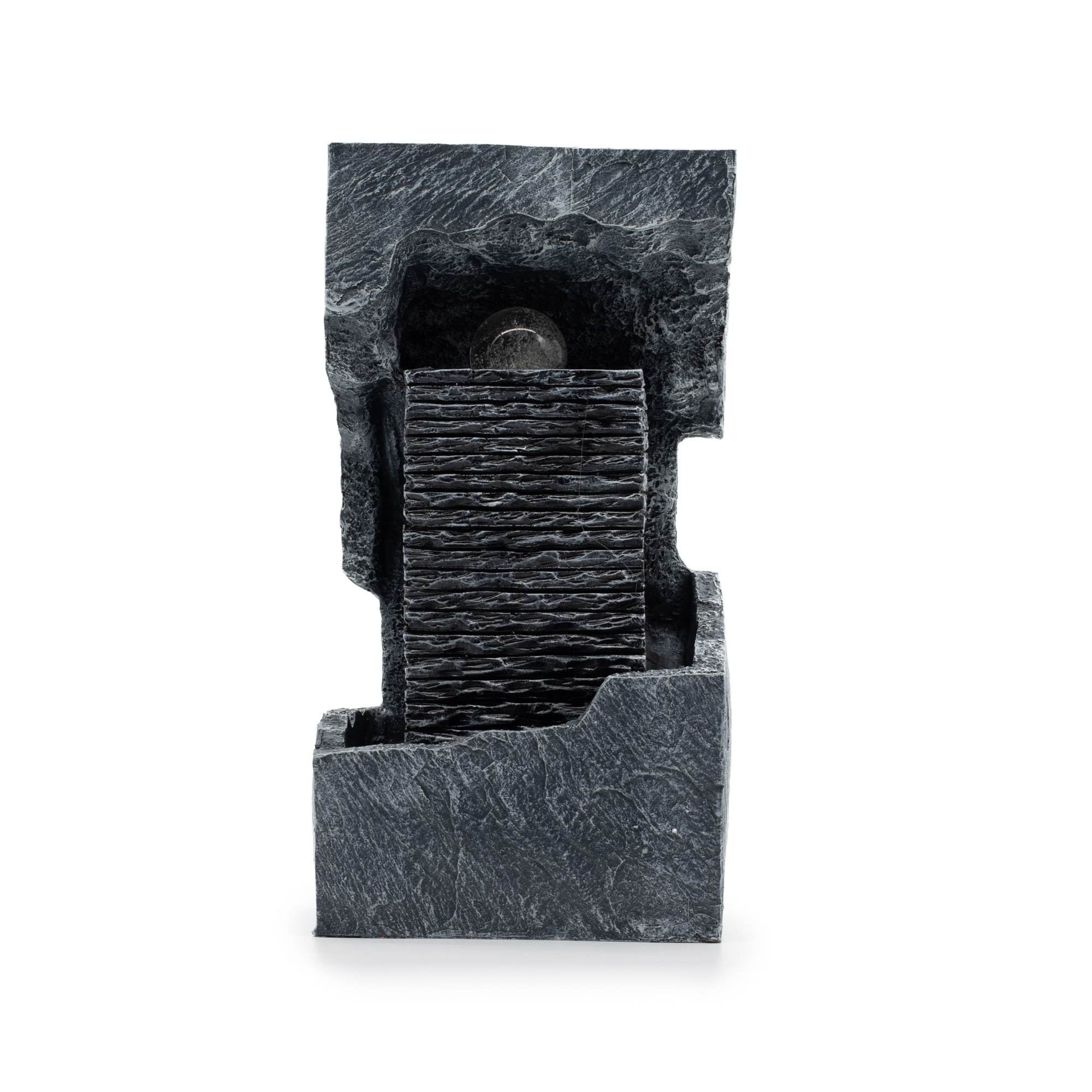 Afgewerkt in een donkere steenlook met een sterke verticale vorm, past dit waterornament perfect in moderne interieurs, van ontvangstruimtes en spa’s tot wellnessstudio’s en minimalistische woningen. Een premium keuze voor retailers die op zoek zijn naar eigentijdse waterornamenten met een krachtige visuele impact en artistieke uitstraling.