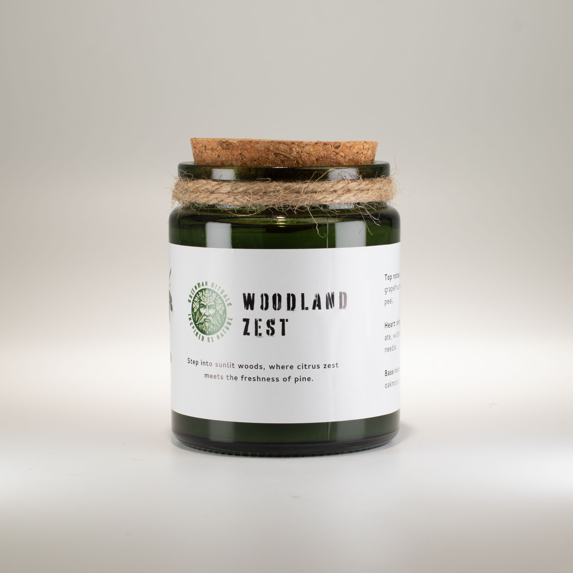 Vervaardigd uit natuurlijke sojawas en afgewerkt met een houten lont, zorgt de kaars voor een zachte knispering die het buitengevoel versterkt. De groene glazen houder met kurken deksel, gecombineerd met een kraft geschenkdoos, creëert een natuurlijke maar verzorgde retailuitstraling, ideaal voor tuincentra, lifestyleboetieks en eigentijdse cadeauwinkels.