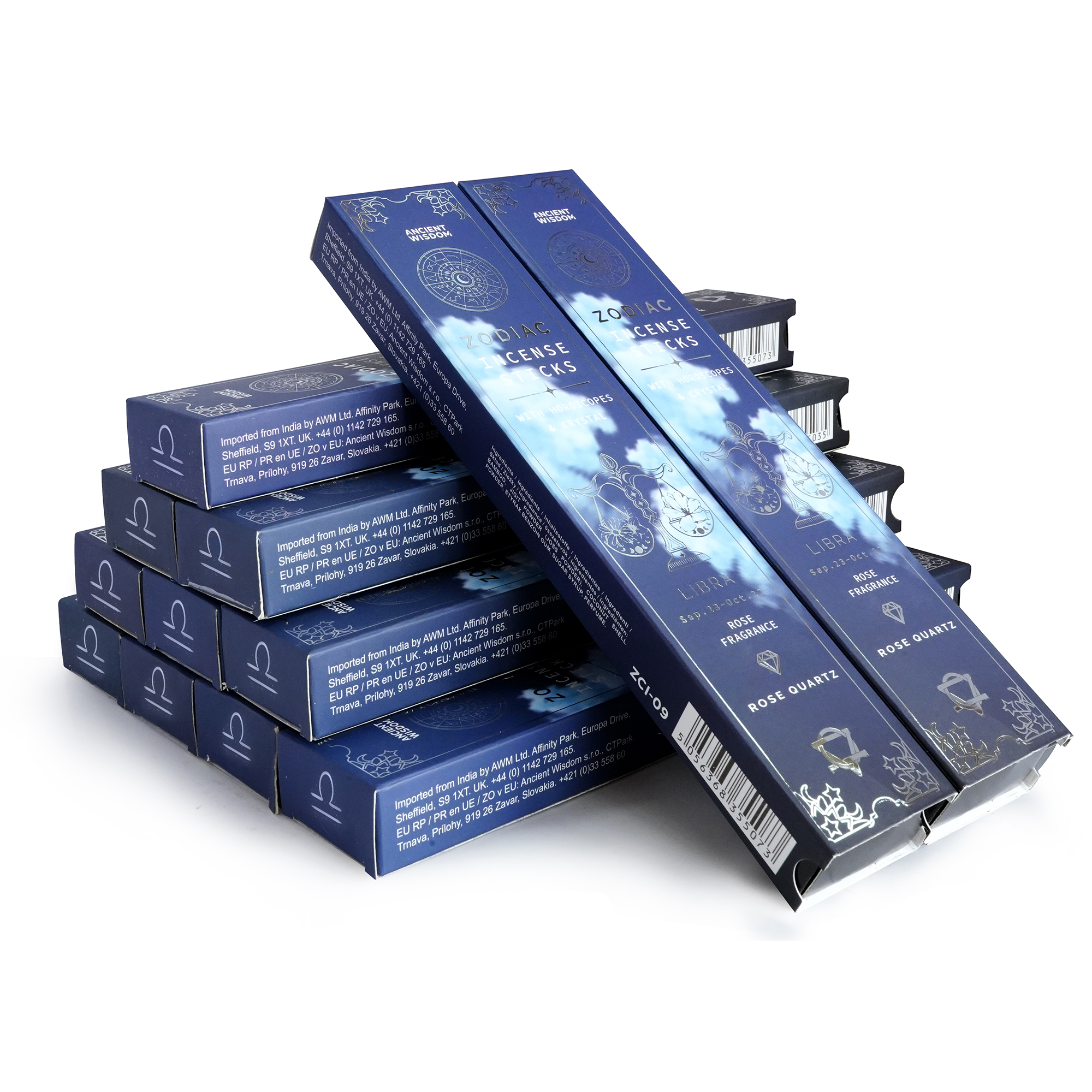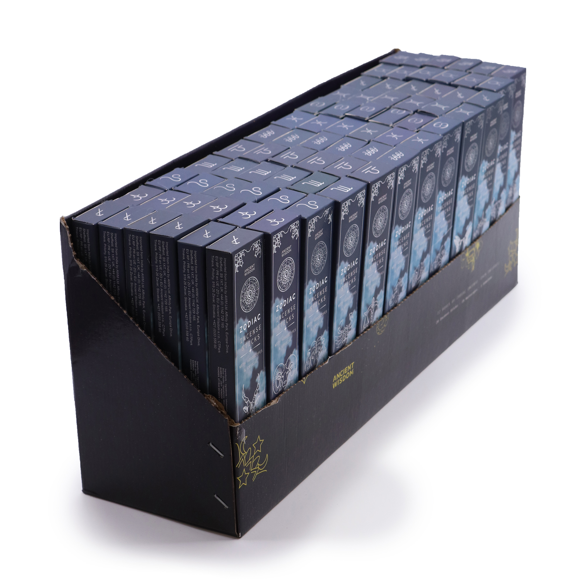 Deze collectie is speciaal samengesteld voor retailers die astrologieproducten willen aanbieden die doordacht, cadeauwaardig en commercieel aantrekkelijk zijn. Elke zodiac-verpakking bevat 20 smudgestokjes, 20 bijpassende horoscopen gedrukt op rijstpapier en een sterrebeeld-gerelateerd kristal — allemaal gepresenteerd in premium bedrukte verpakkingen met zilveren details.